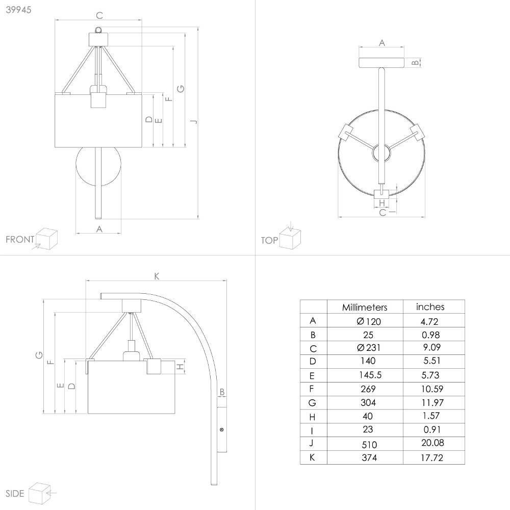 Перечислим технические характеристики Бра Eglo Potosi 39945. Тип цоколя — E27. Общая мощность лампы — 40 Ватт. Высота люстры — 510 мм. Степень защиты — IP20, что обеспечивает защиту от проникновения предметов размером более 12 мм и защиту от капель воды, падающих под углом более 15 градусов. Бра Eglo Potosi 39945 — часть коллекции Potosi. Плафон люстры имеет форму цилиндра и выполнен в черном цвете.