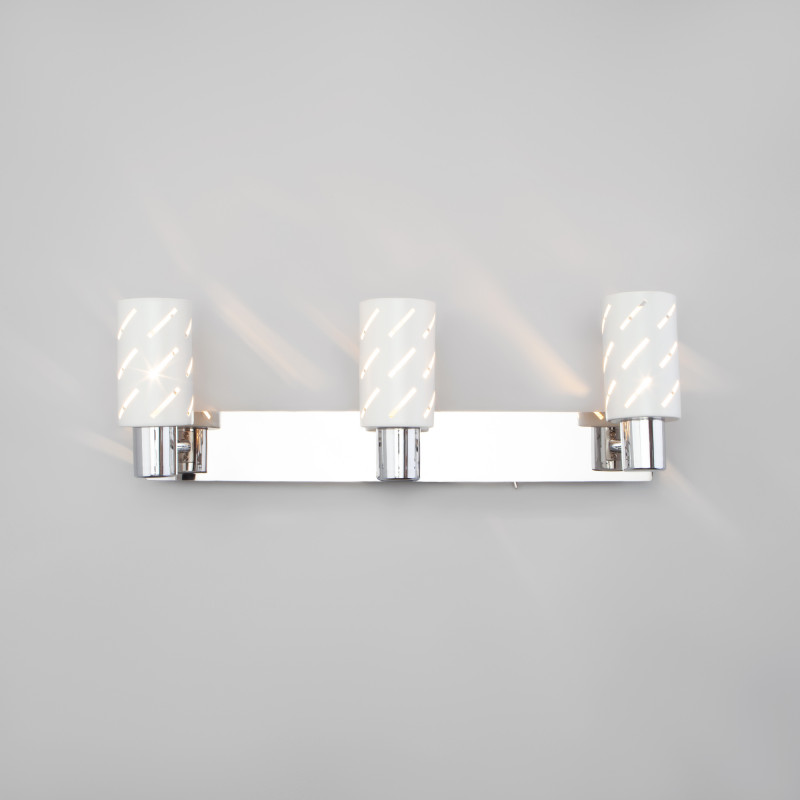 Перечислим технические характеристики Бра Eurosvet 20090/3 белый/хром. Тип цоколя — E14. Общая мощность лампы — 120 Ватт. Высота люстры — 145 мм. Степень защиты — IP20, что обеспечивает защиту от проникновения предметов размером более 12 мм и защиту от капель воды, падающих под углом более 15 градусов. Бра Eurosvet 20090/3 белый/хром — часть коллекции Fente. Плафон люстры имеет форму и выполнен в белом цвете.