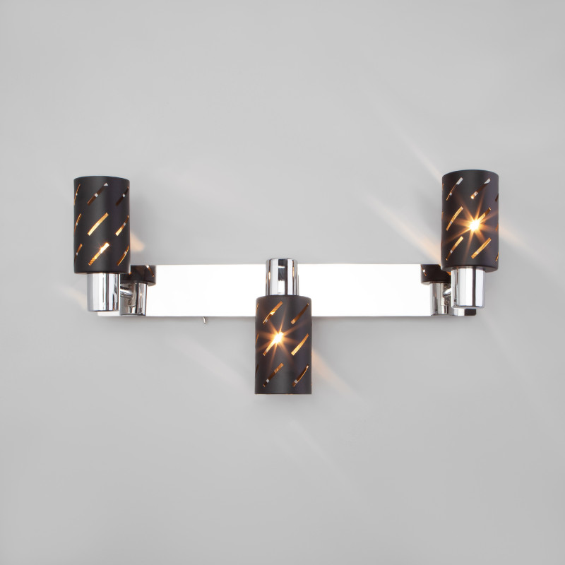 Перечислим технические характеристики Бра Eurosvet 20090/3 черный/хром. Тип цоколя — E14. Общая мощность лампы — 120 Ватт. Высота люстры — 145 мм. Степень защиты — IP20, что обеспечивает защиту от проникновения предметов размером более 12 мм и защиту от капель воды, падающих под углом более 15 градусов. Бра Eurosvet 20090/3 черный/хром — часть коллекции Fente. Плафон люстры имеет форму и выполнен в белом цвете.