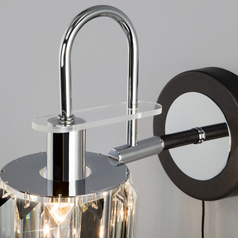 Перечислим технические характеристики Бра Eurosvet 70090/1 графит. Тип цоколя — E14. Общая мощность лампы — 60 Ватт. Высота люстры — 230 мм. Степень защиты — IP20, что обеспечивает защиту от проникновения предметов размером более 12 мм и защиту от капель воды, падающих под углом более 15 градусов. Бра Eurosvet 70090/1 графит — часть коллекции Tenia. Плафон люстры имеет форму цилиндра и выполнен в прозрачном цвете.