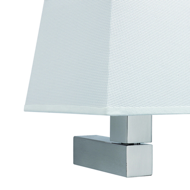 Перечислим технические характеристики Бра Mantra Bahia 5236+5239. Тип цоколя — E27. Общая мощность лампы — 20 Ватт. Высота люстры — 250 мм. Степень защиты — IP20, что обеспечивает защиту от проникновения предметов размером более 12 мм и защиту от капель воды, падающих под углом более 15 градусов. Бра Mantra Bahia 5236+5239 — часть коллекции Bahia Nickel. Плафон люстры имеет форму пирамиды и выполнен в белом цвете.