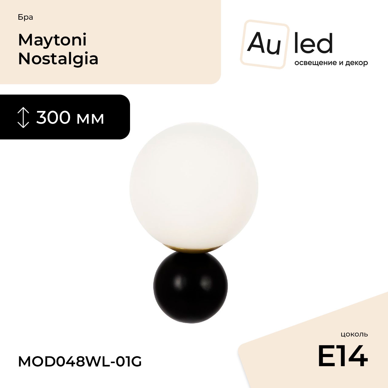 Перечислим технические характеристики Бра Maytoni Nostalgia MOD048WL-01G. Тип цоколя — E14. Общая мощность лампы — 40 Ватт. Высота люстры — 300 мм. Степень защиты — IP20, что обеспечивает защиту от проникновения предметов размером более 12 мм и защиту от капель воды, падающих под углом более 15 градусов. Бра Maytoni Nostalgia MOD048WL-01G — часть коллекции Nostalgia. Плафон люстры имеет форму шара и выполнен в белом цвете.