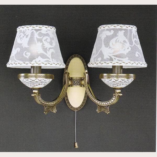 Перечислим технические характеристики Бра Reccagni Angelo A 7032/2. Тип цоколя — E27. Общая мощность лампы — 120 Ватт. Высота люстры — 250 мм. Степень защиты — IP20, что обеспечивает защиту от проникновения предметов размером более 12 мм и защиту от капель воды, падающих под углом более 15 градусов. Бра Reccagni Angelo A 7032/2 — часть коллекции Bronze 7032. Плафон люстры имеет форму конуса и выполнен в белом цвете.