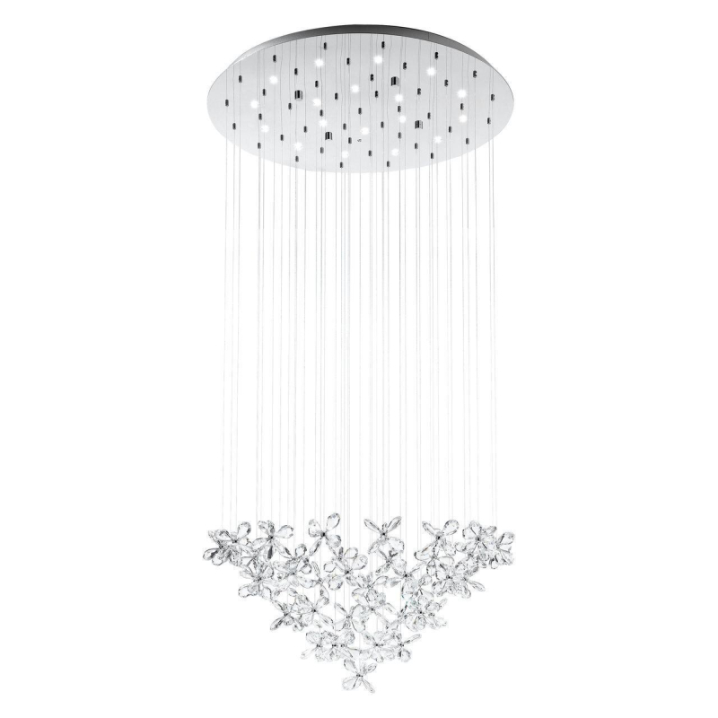 Перечислим технические характеристики Каскадная люстра Eglo Saraceno 31491. Тип цоколя — LED. Общая мощность лампы — 43 Ватт. Высота люстры — 1500 мм. Степень защиты — IP20, что обеспечивает защиту от проникновения предметов размером более 12 мм и защиту от капель воды, падающих под углом более 15 градусов. Каскадная люстра Eglo Saraceno 31491 — часть коллекции Saraceno. Плафон люстры имеет форму Флористика и выполнен в прозрачном цвете.
