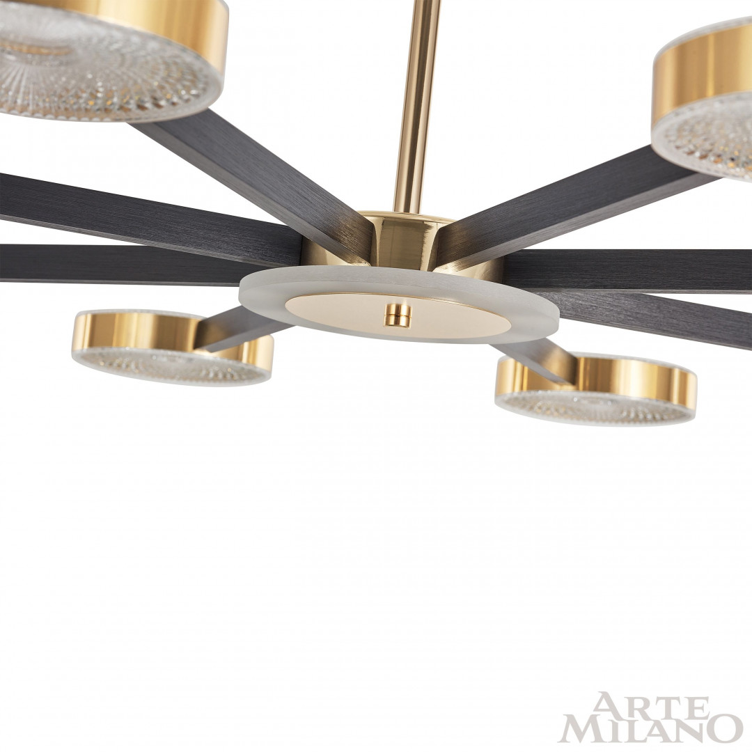 Перечислим технические характеристики люстры на штанге Arte Milano 272079/8 BK/GD. Тип цоколя — LED. Общая мощность лампы — 160 Ватт. Высота люстры — 650 мм. Степень защиты — IP20, что обеспечивает защиту от проникновения предметов размером более 12 мм и защиту от капель воды, падающих под углом более 15 градусов. Люстра на штанге Arte Milano 272079/8 BK/GD — часть коллекции . Плафон люстры имеет форму круга и выполнен в прозрачном цвете.