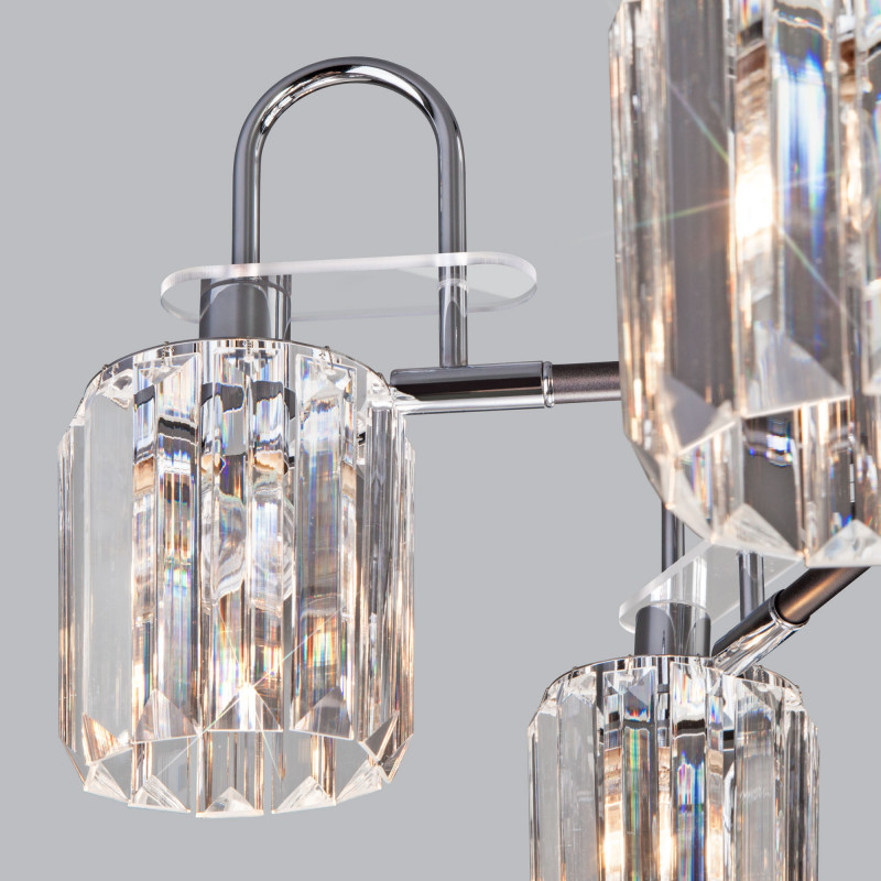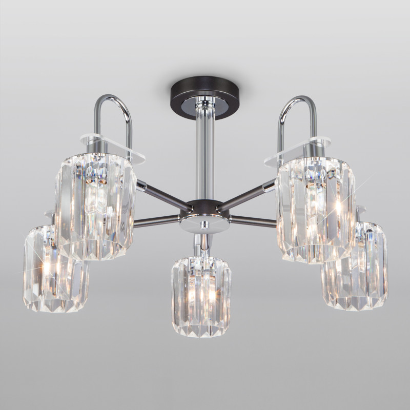 Перечислим технические характеристики люстры на штанге Eurosvet 70090/5 графит. Тип цоколя — E14. Общая мощность лампы — 300 Ватт. Высота люстры — 340 мм. Степень защиты — IP20, что обеспечивает защиту от проникновения предметов размером более 12 мм и защиту от капель воды, падающих под углом более 15 градусов. Люстра на штанге Eurosvet 70090/5 графит — часть коллекции Tenia. Плафон люстры имеет форму цилиндра и выполнен в черном цвете.