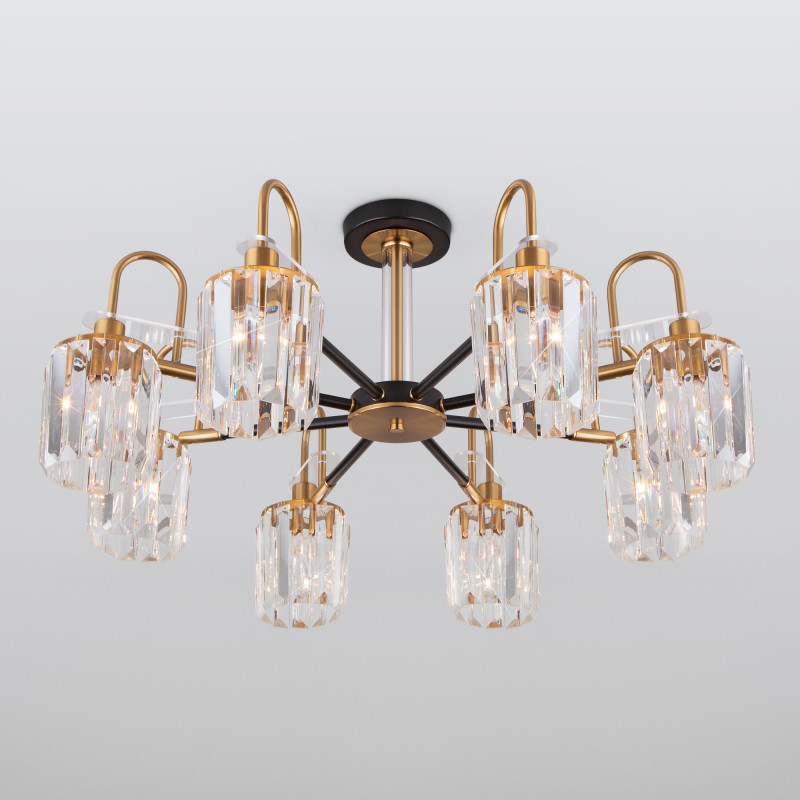 Перечислим технические характеристики люстры на штанге Eurosvet 70090/8 черный. Тип цоколя — E14. Общая мощность лампы — 480 Ватт. Высота люстры — 340 мм. Степень защиты — IP20, что обеспечивает защиту от проникновения предметов размером более 12 мм и защиту от капель воды, падающих под углом более 15 градусов. Люстра на штанге Eurosvet 70090/8 черный — часть коллекции Tenia. Плафон люстры имеет форму цилиндра и выполнен в черном цвете.