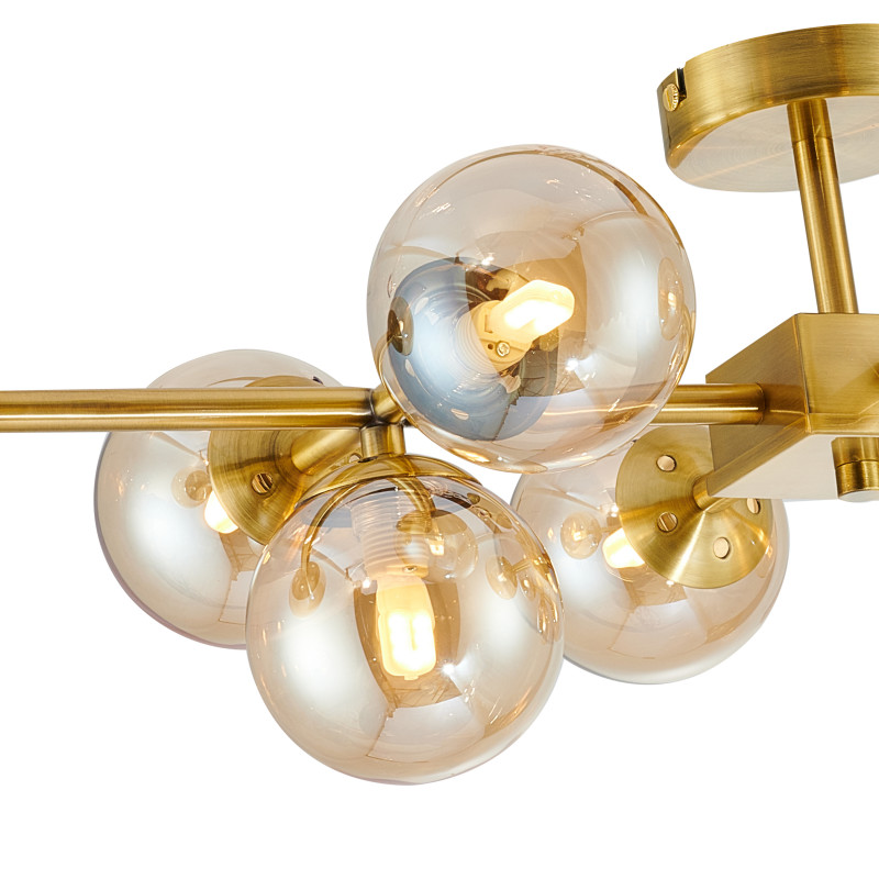 Перечислим технические характеристики люстры на штанге Favourite 2649-10U. Тип цоколя — G9. Общая мощность лампы — 280 Ватт. Высота люстры — 235 мм. Степень защиты — IP20, что обеспечивает защиту от проникновения предметов размером более 12 мм и защиту от капель воды, падающих под углом более 15 градусов. Люстра на штанге Favourite 2649-10U — часть коллекции Varietas. Плафон люстры имеет форму шара и выполнен в Янтарный цвете.