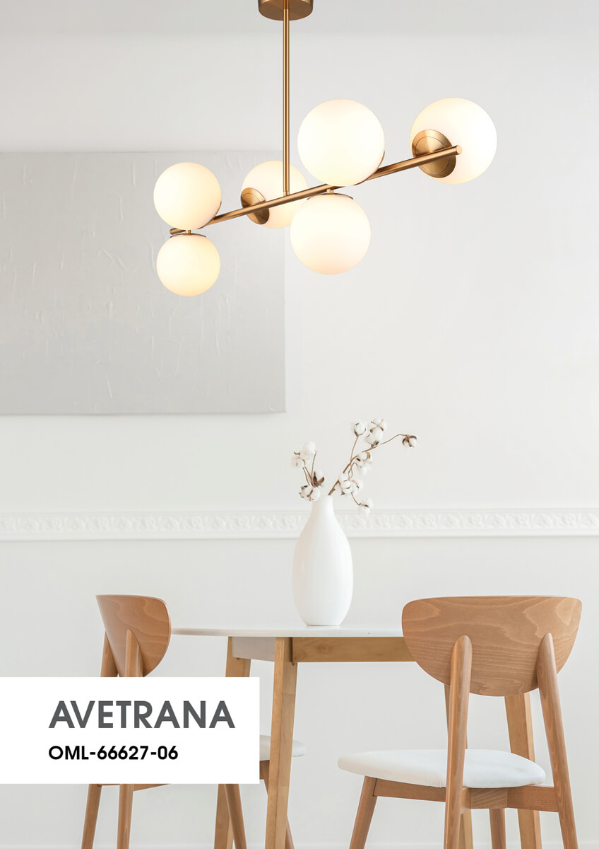 Перечислим технические характеристики люстры на штанге Omnilux OML-66627-06. Тип цоколя — E27. Общая мощность лампы — 30 Ватт. Высота люстры — 600 мм. Степень защиты — IP20, что обеспечивает защиту от проникновения предметов размером более 12 мм и защиту от капель воды, падающих под углом более 15 градусов. Люстра на штанге Omnilux OML-66627-06 — часть коллекции Avetrana. Плафон люстры имеет форму шара и выполнен в белом цвете.