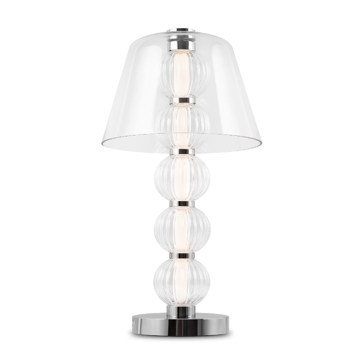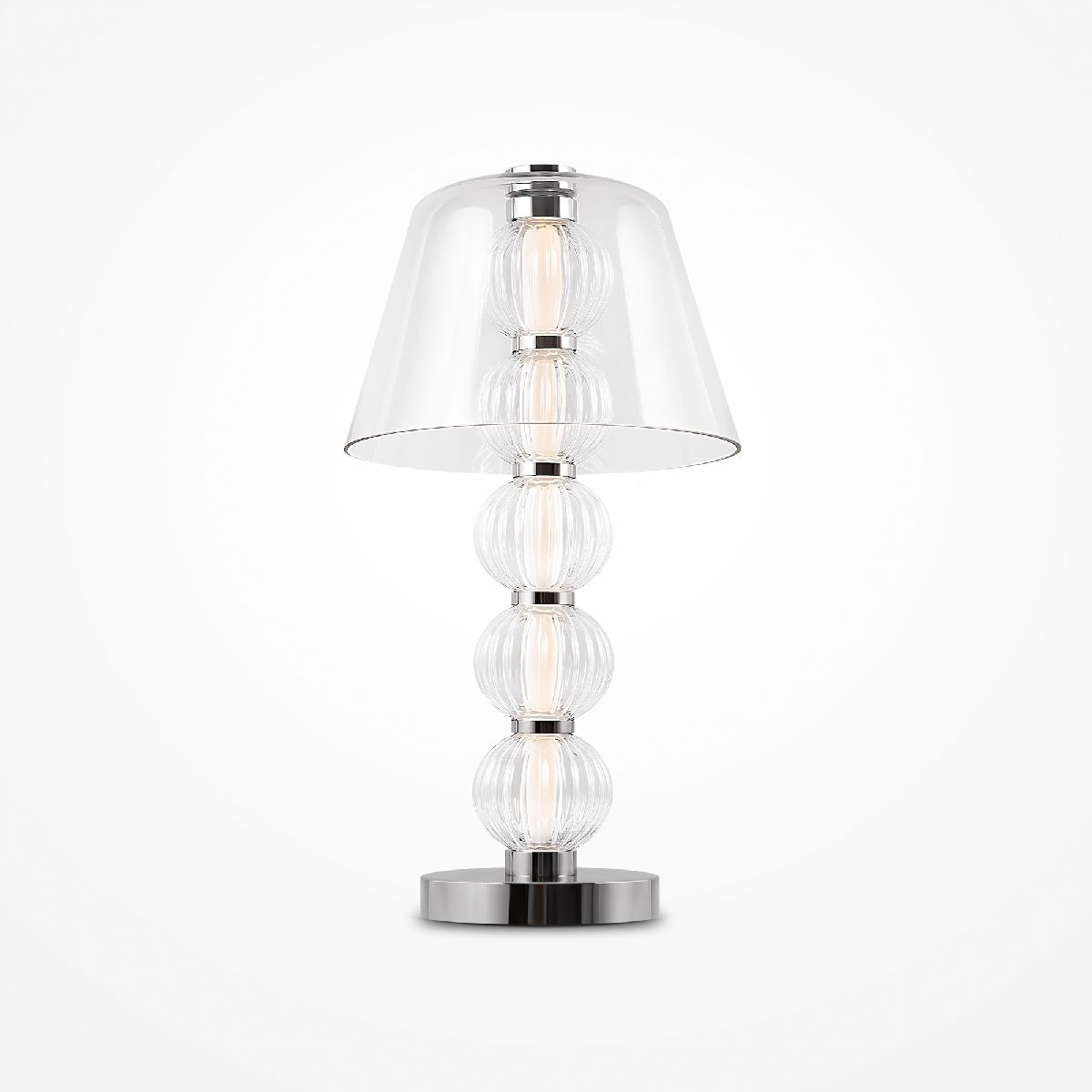 Перечислим технические характеристики настольной лампы Maytoni Amulet MOD555TL-L9CH4K. Тип цоколя — LED. Общая мощность лампы — 9 Ватт. Высота люстры — 452 мм. Степень защиты — IP20, что обеспечивает защиту от проникновения предметов размером более 12 мм и защиту от капель воды, падающих под углом более 15 градусов. Настольная лампа Maytoni Amulet MOD555TL-L9CH4K — часть коллекции Amulet. Плафон люстры имеет форму конуса и выполнен в прозрачном цвете.