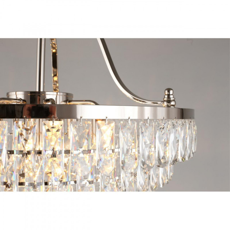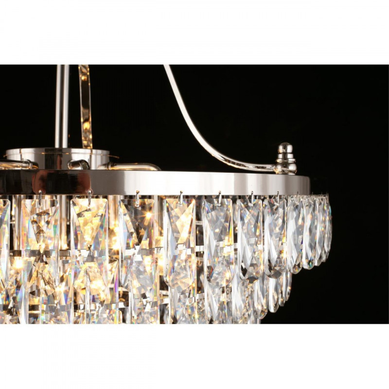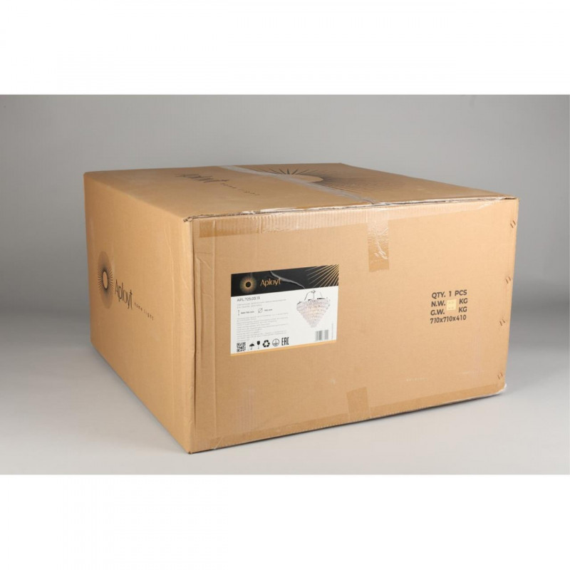 Перечислим технические характеристики подвесной люстры APLOYT Gerta APL.725.03.13. Тип цоколя — E14. Общая мощность лампы — 520 Ватт. Высота люстры — 1800 мм. Степень защиты — IP20, что обеспечивает защиту от проникновения предметов размером более 12 мм и защиту от капель воды, падающих под углом более 15 градусов. Подвесная люстра APLOYT Gerta APL.725.03.13 — часть коллекции Gerta. Плафон люстры имеет форму овала и выполнен в прозрачном цвете.