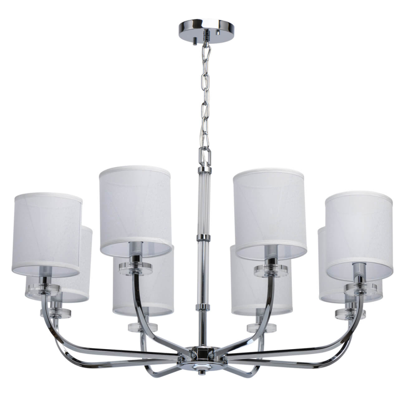Перечислим технические характеристики подвесной люстры Chiaro Палермо 386017008. Тип цоколя — E14. Общая мощность лампы — 480 Ватт. Высота люстры — 600 мм. Степень защиты — IP20, что обеспечивает защиту от проникновения предметов размером более 12 мм и защиту от капель воды, падающих под углом более 15 градусов. Подвесная люстра Chiaro Палермо 386017008 — часть коллекции Палермо. Плафон люстры имеет форму цилиндра и выполнен в белом цвете.