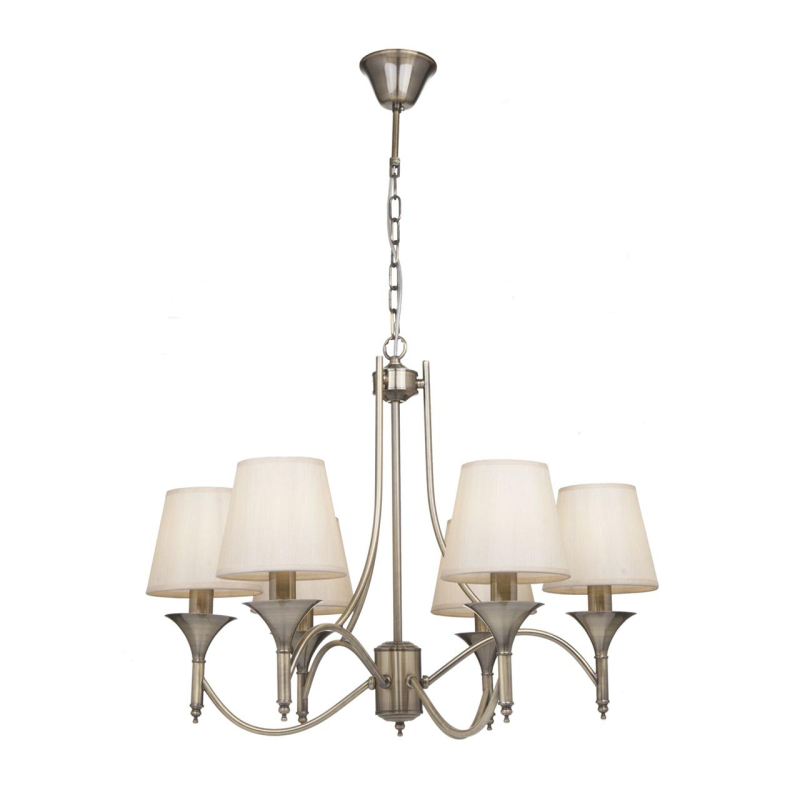 Перечислим технические характеристики подвесной люстры Freya Dalia FR2005PL-06BZ. Тип цоколя — E14. Общая мощность лампы — 240 Ватт. Высота люстры — 720 мм. Степень защиты — IP20, что обеспечивает защиту от проникновения предметов размером более 12 мм и защиту от капель воды, падающих под углом более 15 градусов. Подвесная люстра Freya Dalia FR2005PL-06BZ — часть коллекции Dalia. Плафон люстры имеет форму конуса и выполнен в бежевом цвете.