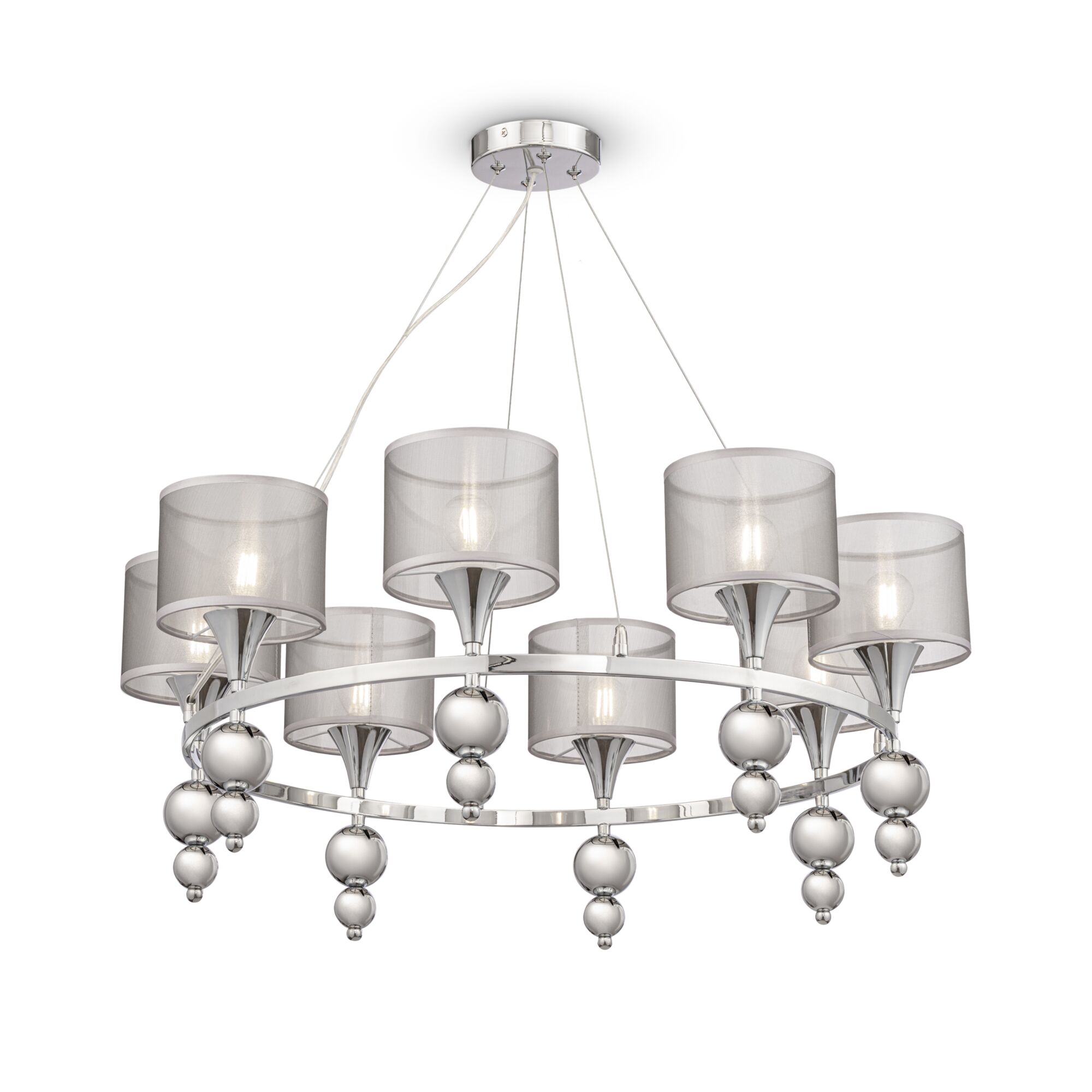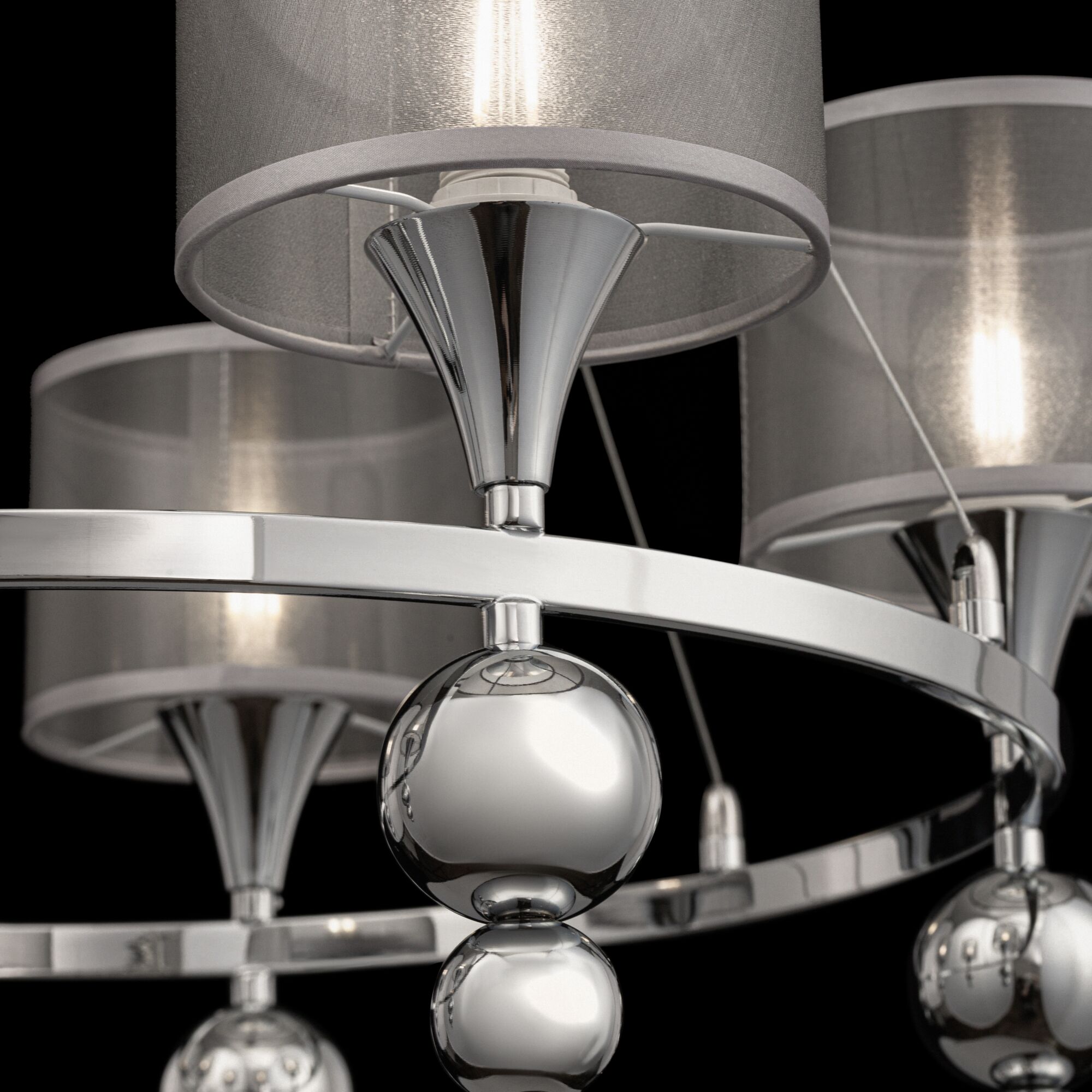 Перечислим технические характеристики подвесной люстры Freya Lauren FR5093PL-08CH. Тип цоколя — E14. Общая мощность лампы — 320 Ватт. Высота люстры — 300 мм. Степень защиты — IP20, что обеспечивает защиту от проникновения предметов размером более 12 мм и защиту от капель воды, падающих под углом более 15 градусов. Подвесная люстра Freya Lauren FR5093PL-08CH — часть коллекции Lauren. Плафон люстры имеет форму цилиндра и выполнен в серебристом цвете.