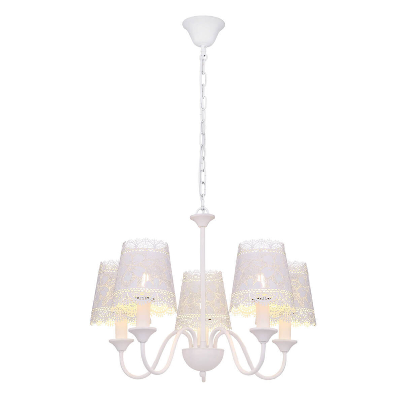 Перечислим технические характеристики подвесной люстры Globo Sabadell 15372-5H. Тип цоколя — E14. Общая мощность лампы — 200 Ватт. Высота люстры — 1520 мм. Степень защиты — IP20, что обеспечивает защиту от проникновения предметов размером более 12 мм и защиту от капель воды, падающих под углом более 15 градусов. Подвесная люстра Globo Sabadell 15372-5H — часть коллекции Sabadell. Плафон люстры имеет форму конуса и выполнен в белом цвете.