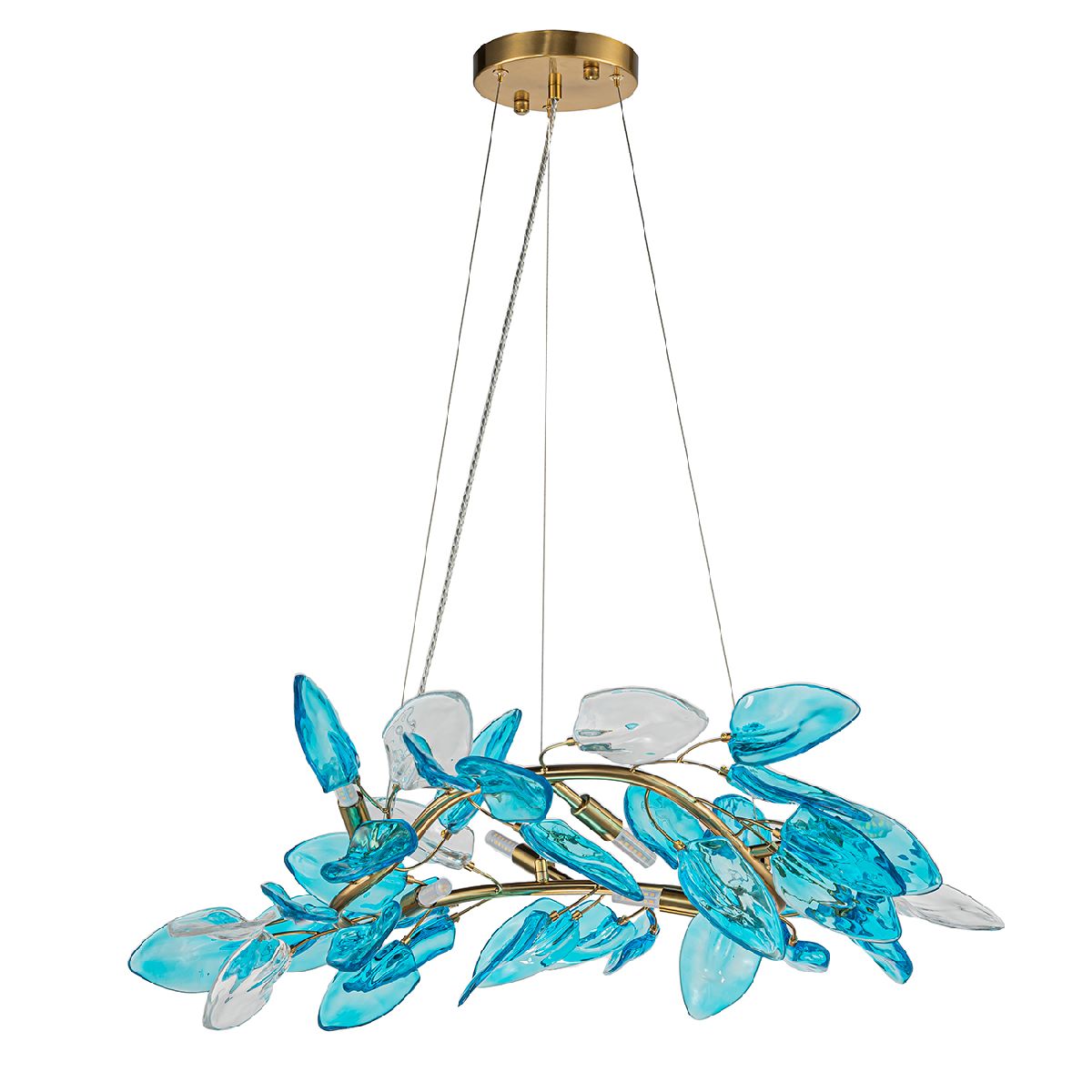 Перечислим технические характеристики подвесной люстры Indigo Olivo V000448. Тип цоколя — G9. Общая мощность лампы — 120 Ватт. Высота люстры — 1500 мм. Степень защиты — IP20, что обеспечивает защиту от проникновения предметов размером более 12 мм и защиту от капель воды, падающих под углом более 15 градусов. Подвесная люстра Indigo Olivo V000448 — часть коллекции Olivo. Плафон люстры имеет форму Декоративный и выполнен в голубом цвете.