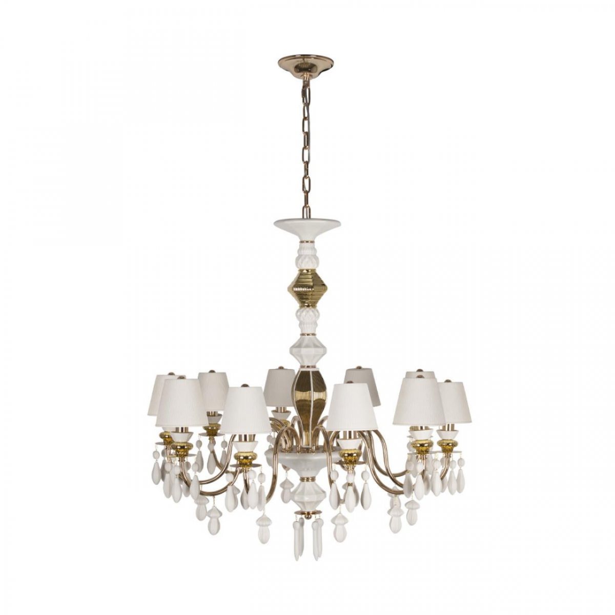 Перечислим технические характеристики подвесной люстры Loft IT Grace 10203/10 White. Тип цоколя — E14. Общая мощность лампы — 400 Ватт. Высота люстры — 1065 мм. Степень защиты — IP20, что обеспечивает защиту от проникновения предметов размером более 12 мм и защиту от капель воды, падающих под углом более 15 градусов. Подвесная люстра Loft IT Grace 10203/10 White — часть коллекции Grace. Плафон люстры имеет форму конуса и выполнен в белом цвете.