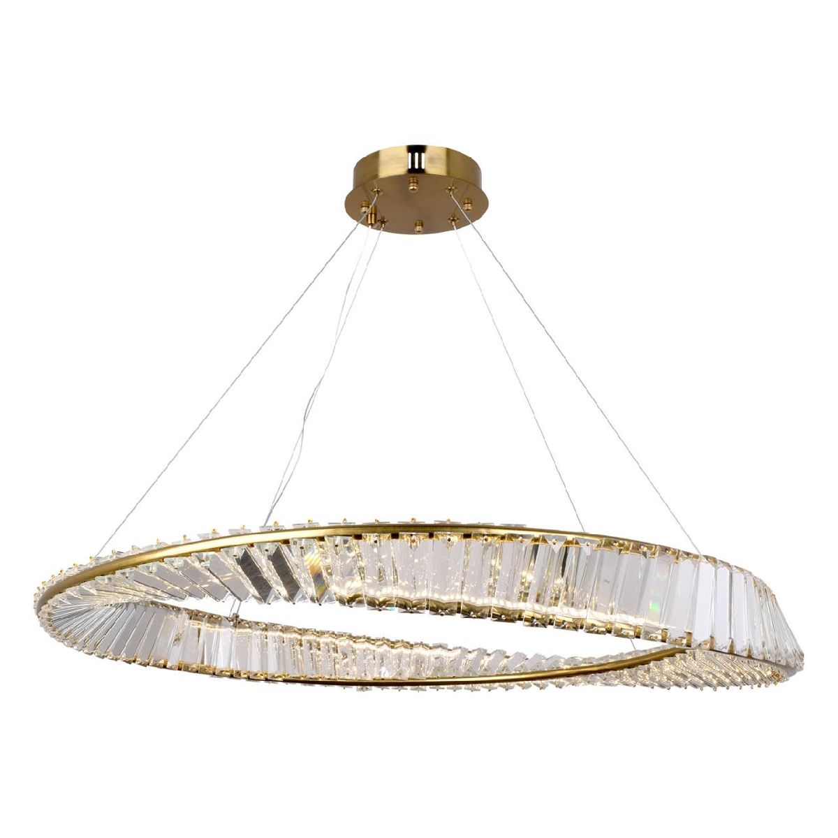Перечислим технические характеристики подвесной люстры Lussole Kent LSP-7120. Тип цоколя — LED. Общая мощность лампы — 52 Ватт. Высота люстры — 1200 мм. Степень защиты — IP20, что обеспечивает защиту от проникновения предметов размером более 12 мм и защиту от капель воды, падающих под углом более 15 градусов. Подвесная люстра Lussole Kent LSP-7120 — часть коллекции Kent. Плафон люстры имеет форму кольца и выполнен в прозрачном цвете.