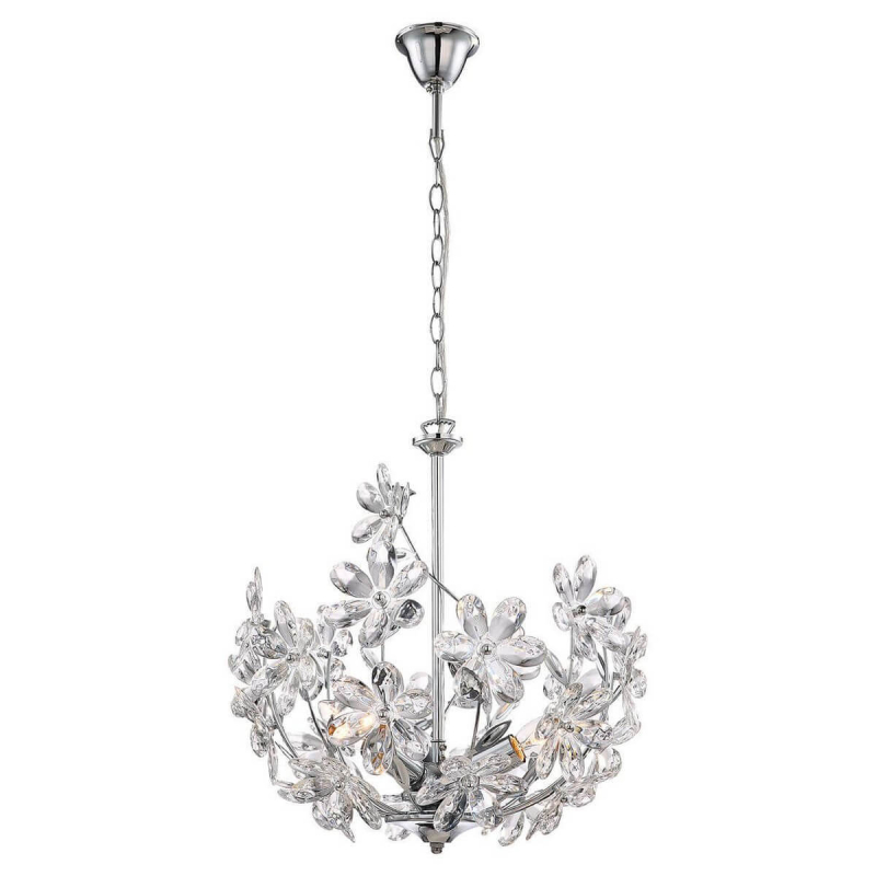 Перечислим технические характеристики подвесной люстры Lussole Lgo LSP-0184. Тип цоколя — E14. Общая мощность лампы — 120 Ватт. Высота люстры — 1100 мм. Степень защиты — IP20, что обеспечивает защиту от проникновения предметов размером более 12 мм и защиту от капель воды, падающих под углом более 15 градусов. Подвесная люстра Lussole Lgo LSP-0184 — часть коллекции Lgo. Плафон люстры имеет форму Флористика и выполнен в прозрачном цвете.
