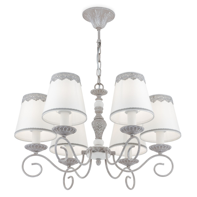 Перечислим технические характеристики подвесной люстры Maytoni Bouquet ARM023-06-S. Тип цоколя — E14. Общая мощность лампы — 240 Ватт. Высота люстры — 780 мм. Степень защиты — IP20, что обеспечивает защиту от проникновения предметов размером более 12 мм и защиту от капель воды, падающих под углом более 15 градусов. Подвесная люстра Maytoni Bouquet ARM023-06-S — часть коллекции Bouquet. Плафон люстры имеет форму конуса и выполнен в белом цвете.