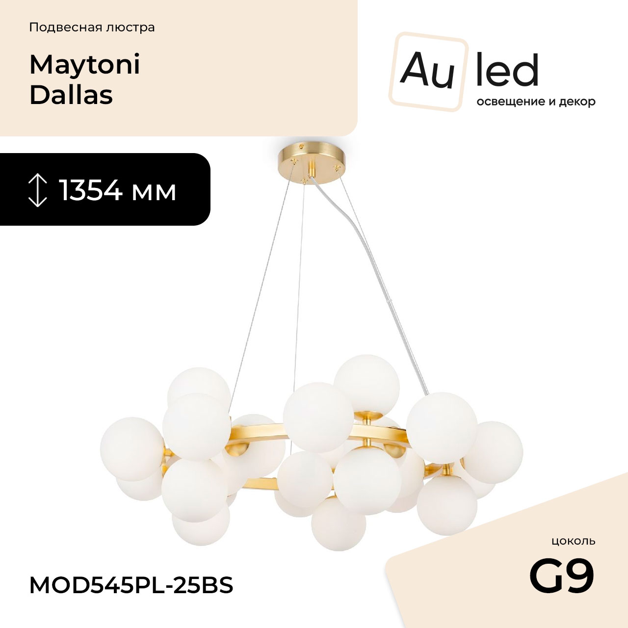 Перечислим технические характеристики подвесной люстры Maytoni Dallas MOD545PL-25BS. Тип цоколя — G9. Общая мощность лампы — 700 Ватт. Высота люстры — 1354 мм. Степень защиты — IP20, что обеспечивает защиту от проникновения предметов размером более 12 мм и защиту от капель воды, падающих под углом более 15 градусов. Подвесная люстра Maytoni Dallas MOD545PL-25BS — часть коллекции Dallas. Плафон люстры имеет форму шара и выполнен в белом цвете.