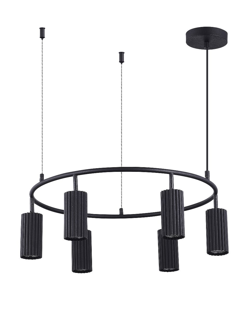 Перечислим технические характеристики подвесной люстры Moderli Cora V11066-6P. Тип цоколя — GU10. Общая мощность лампы — 150 Ватт. Высота люстры — 1800 мм. Степень защиты — IP20, что обеспечивает защиту от проникновения предметов размером более 12 мм и защиту от капель воды, падающих под углом более 15 градусов. Подвесная люстра Moderli Cora V11066-6P — часть коллекции Cora. Плафон люстры имеет форму цилиндра и выполнен в черном цвете.