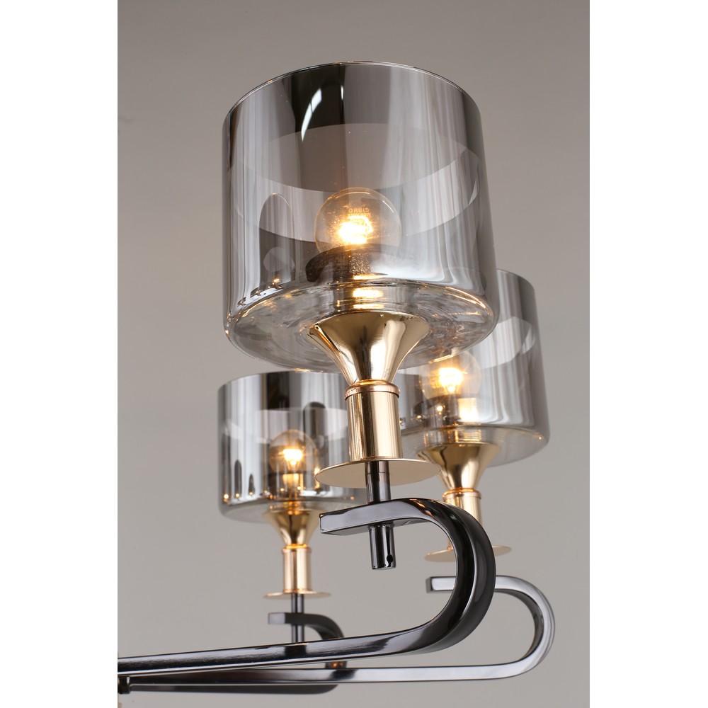 Перечислим технические характеристики подвесной люстры Omnilux Ausonia OML-68703-08. Тип цоколя — E27. Общая мощность лампы — 320 Ватт. Высота люстры — 700 мм. Степень защиты — IP20, что обеспечивает защиту от проникновения предметов размером более 12 мм и защиту от капель воды, падающих под углом более 15 градусов. Подвесная люстра Omnilux Ausonia OML-68703-08 — часть коллекции Ausonia. Плафон люстры имеет форму цилиндра и выполнен в серебристом цвете.