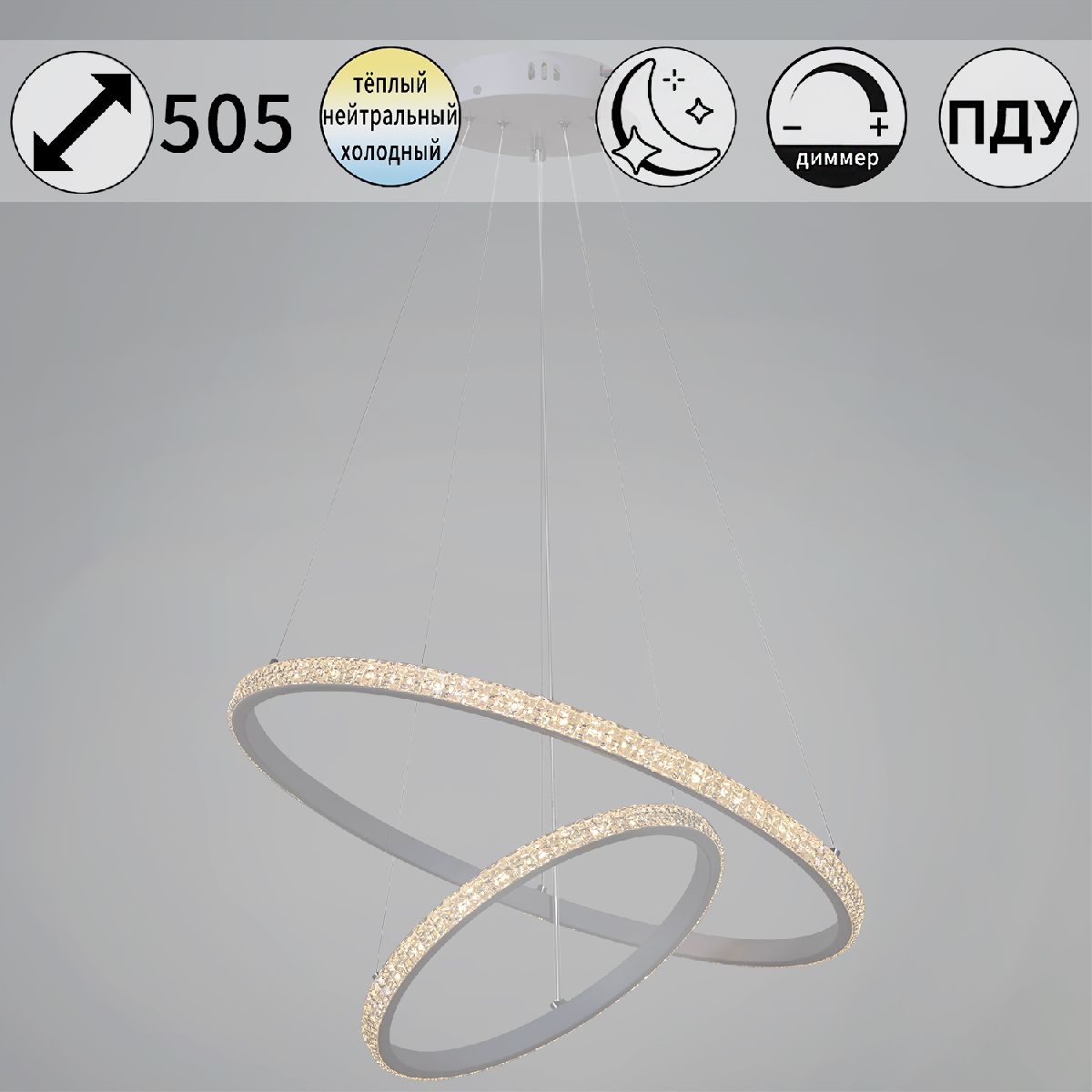 Перечислим технические характеристики подвесной люстры Reluce 06315-3.9-02 WH. Тип цоколя — LED. Общая мощность лампы — 86 Ватт. Высота люстры — 1000 мм. Степень защиты — IP20, что обеспечивает защиту от проникновения предметов размером более 12 мм и защиту от капель воды, падающих под углом более 15 градусов. Подвесная люстра Reluce 06315-3.9-02 WH — часть коллекции . Плафон люстры имеет форму кольца и выполнен в прозрачном цвете.