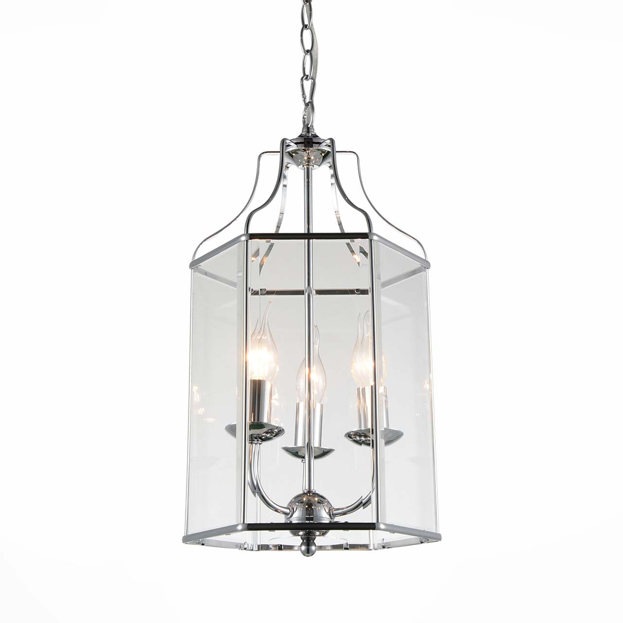 Перечислим технические характеристики подвесной люстры ST Luce SL228.103.03. Тип цоколя — E14. Общая мощность лампы — 120 Ватт. Высота люстры — 420 мм. Степень защиты — IP20, что обеспечивает защиту от проникновения предметов размером более 12 мм и защиту от капель воды, падающих под углом более 15 градусов. Подвесная люстра ST Luce SL228.103.03 — часть коллекции SL228.1. Плафон люстры имеет форму призмы и выполнен в прозрачном цвете.