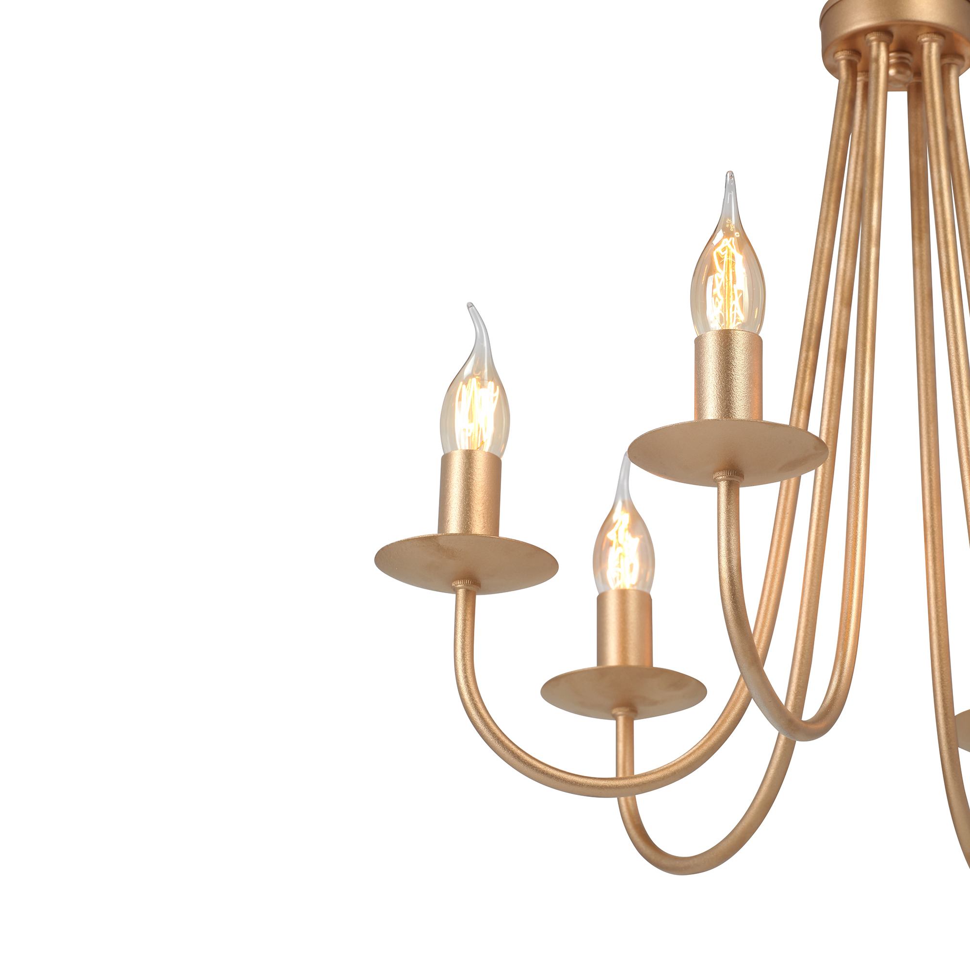 Перечислим технические характеристики подвесной люстры Vitaluce V3718-8/6. Тип цоколя — E14. Общая мощность лампы — 240 Ватт. Высота люстры — 1080 мм. Степень защиты — IP20, что обеспечивает защиту от проникновения предметов размером более 12 мм и защиту от капель воды, падающих под углом более 15 градусов. Подвесная люстра Vitaluce V3718-8/6 — часть коллекции V3718. Плафон люстры имеет форму Без плафона и выполнен в цвете.