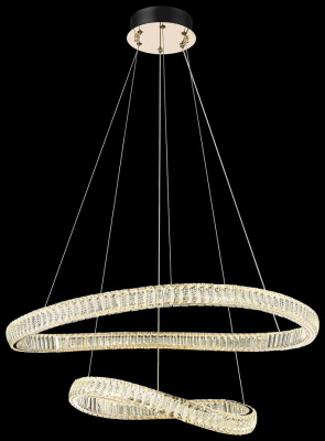 Перечислим технические характеристики подвесной люстры Wertmark Emilia WE459.02.303. Тип цоколя — LED. Общая мощность лампы — 90 Ватт. Высота люстры — 1600 мм. Степень защиты — IP20, что обеспечивает защиту от проникновения предметов размером более 12 мм и защиту от капель воды, падающих под углом более 15 градусов. Подвесная люстра Wertmark Emilia WE459.02.303 — часть коллекции Emilia. Плафон люстры имеет форму кольца и выполнен в прозрачном цвете.