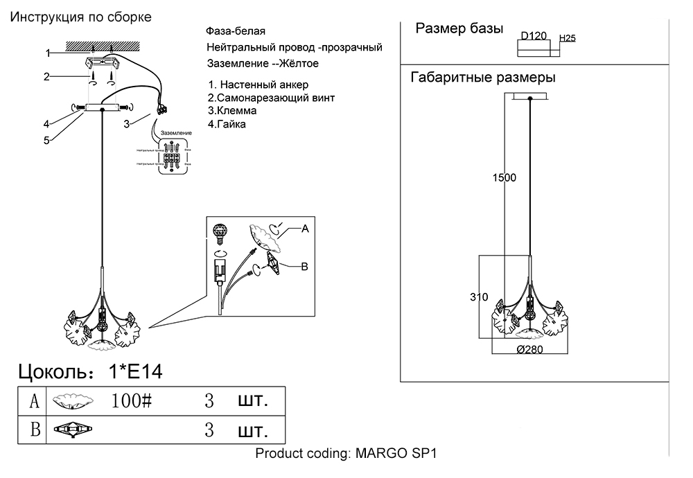Перечислим технические характеристики подвесного светильника Crystal Lux MARGO SP1. Тип цоколя — E14. Общая мощность лампы — 40 Ватт. Высота люстры — 310 мм. Степень защиты — IP20, что обеспечивает защиту от проникновения предметов размером более 12 мм и защиту от капель воды, падающих под углом более 15 градусов. Подвесной светильник Crystal Lux MARGO SP1 — часть коллекции Margo. Плафон люстры имеет форму Флористика и выполнен в белом цвете.