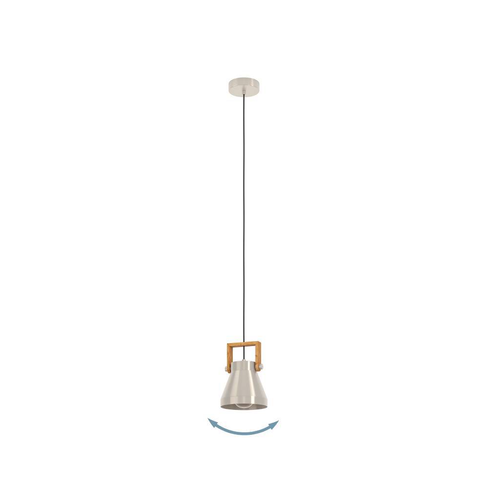 Перечислим технические характеристики подвесного светильника Eglo Cawton 43951. Тип цоколя — E27. Общая мощность лампы — 40 Ватт. Высота люстры — 1100 мм. Степень защиты — IP20, что обеспечивает защиту от проникновения предметов размером более 12 мм и защиту от капель воды, падающих под углом более 15 градусов. Подвесной светильник Eglo Cawton 43951 — часть коллекции Cawton. Плафон люстры имеет форму конуса и выполнен в Никель цвете.