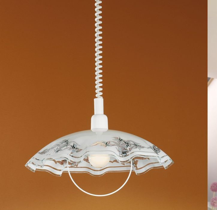 Перечислим технические характеристики подвесного светильника Eglo Vetro 3041. Тип цоколя — E27. Общая мощность лампы — 60 Ватт. Высота люстры — 1100 мм. Степень защиты — IP20, что обеспечивает защиту от проникновения предметов размером более 12 мм и защиту от капель воды, падающих под углом более 15 градусов. Подвесной светильник Eglo Vetro 3041 — часть коллекции Vetro. Плафон люстры имеет форму полукруга и выполнен в белом цвете.