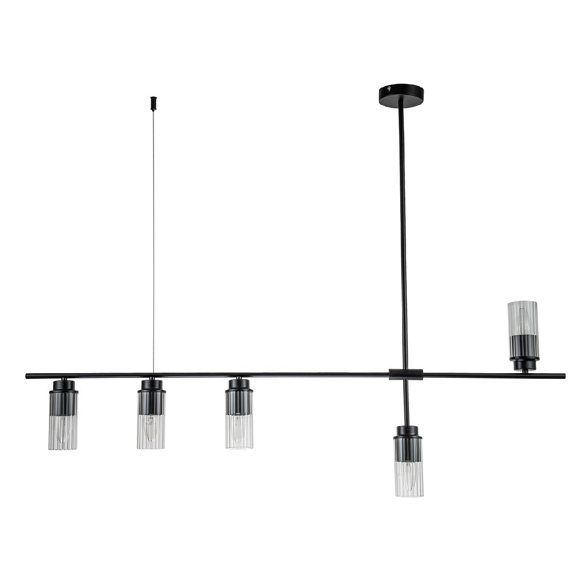 Перечислим технические характеристики подвесного светильника Escada Reverse 2100/5P Black. Тип цоколя — E14. Общая мощность лампы — 200 Ватт. Высота люстры — 890 мм. Степень защиты — IP20, что обеспечивает защиту от проникновения предметов размером более 12 мм и защиту от капель воды, падающих под углом более 15 градусов. Подвесной светильник Escada Reverse 2100/5P Black — часть коллекции Reverse. Плафон люстры имеет форму цилиндра и выполнен в прозрачном цвете.