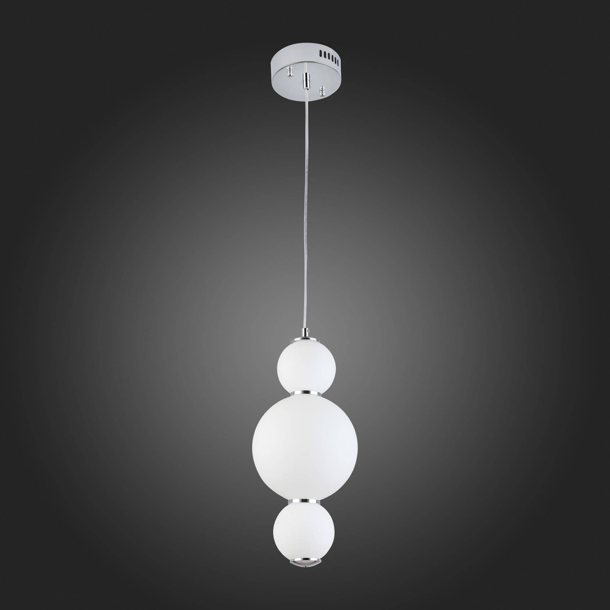 Перечислим технические характеристики подвесного светильника ST Luce SL1583.113.01. Тип цоколя — LED. Общая мощность лампы — 18 Ватт. Высота люстры — 1590 мм. Степень защиты — IP20, что обеспечивает защиту от проникновения предметов размером более 12 мм и защиту от капель воды, падающих под углом более 15 градусов. Подвесной светильник ST Luce SL1583.113.01 — часть коллекции NEPAZZO. Плафон люстры имеет форму шара и выполнен в белом цвете.