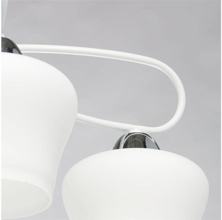 Перечислим технические характеристики потолочной люстры De Markt Альфа 324017704. Тип цоколя — E27. Общая мощность лампы — 240 Ватт. Высота люстры — 260 мм. Степень защиты — IP20, что обеспечивает защиту от проникновения предметов размером более 12 мм и защиту от капель воды, падающих под углом более 15 градусов. Потолочная люстра De Markt Альфа 324017704 — часть коллекции Альфа. Плафон люстры имеет форму конуса и выполнен в белом цвете.