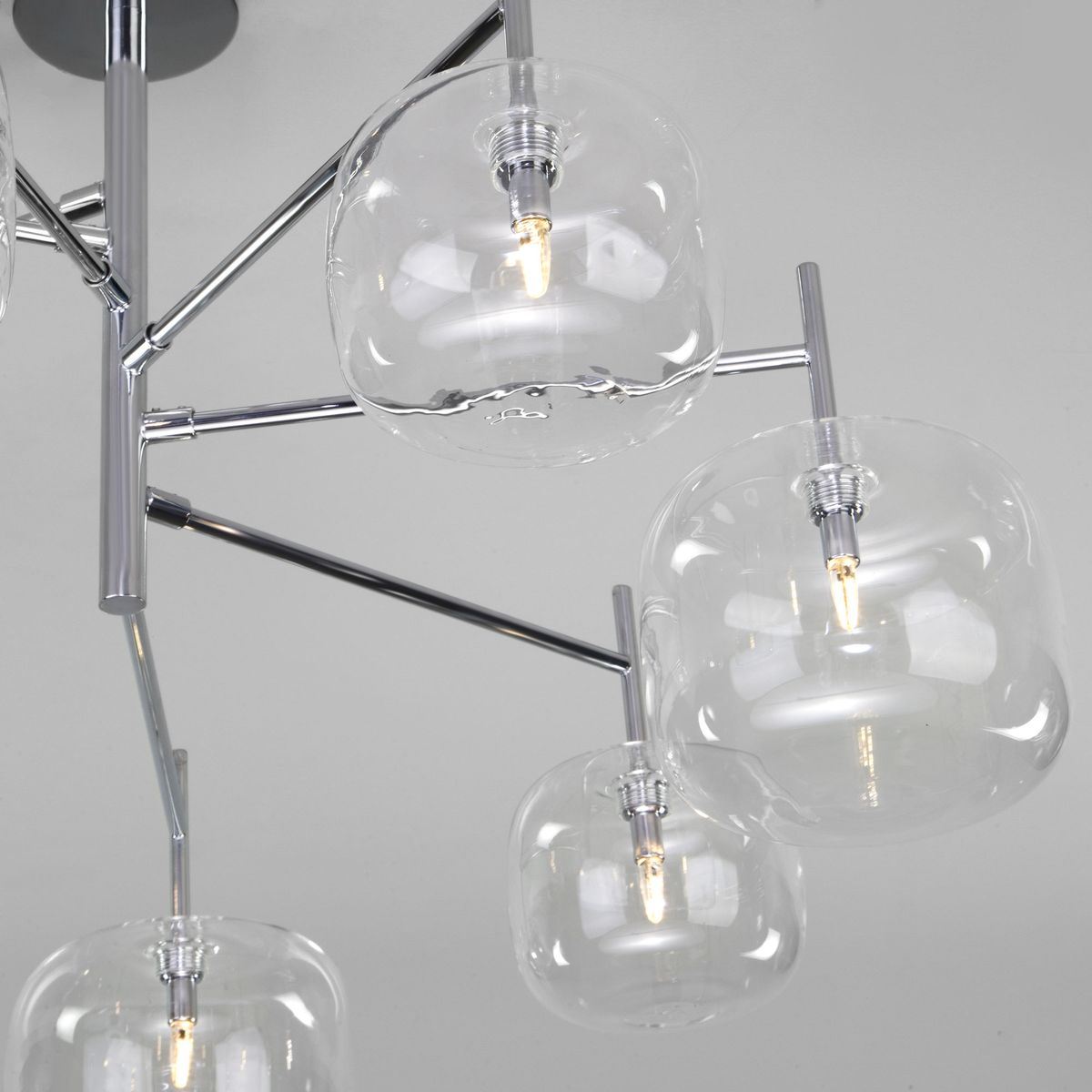 Перечислим технические характеристики потолочной люстры Eurosvet Jar 70128/7 хром. Тип цоколя — G4. Общая мощность лампы — 21 Ватт. Высота люстры — 500 мм. Степень защиты — IP20, что обеспечивает защиту от проникновения предметов размером более 12 мм и защиту от капель воды, падающих под углом более 15 градусов. Потолочная люстра Eurosvet Jar 70128/7 хром — часть коллекции Jar. Плафон люстры имеет форму шара и выполнен в прозрачном цвете.