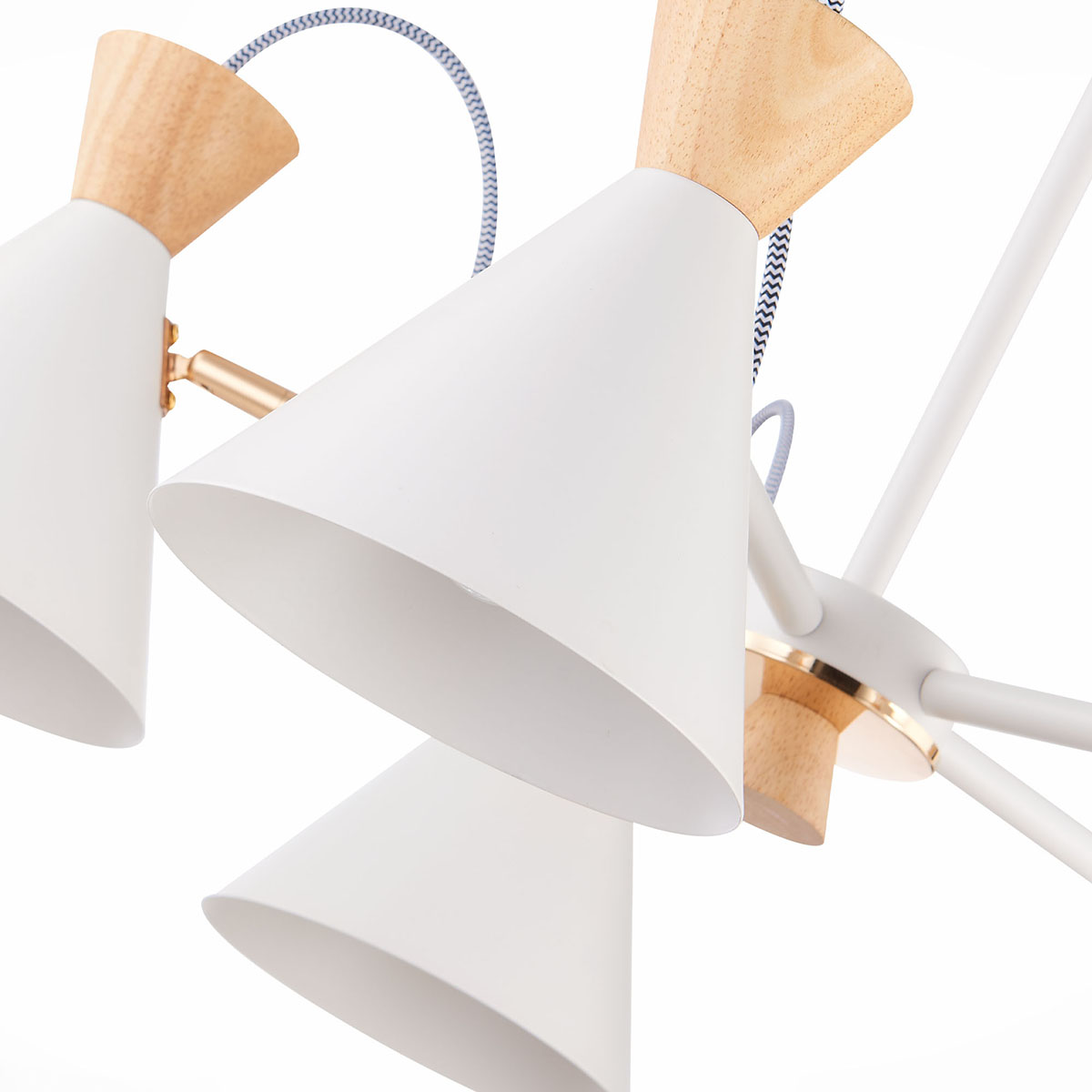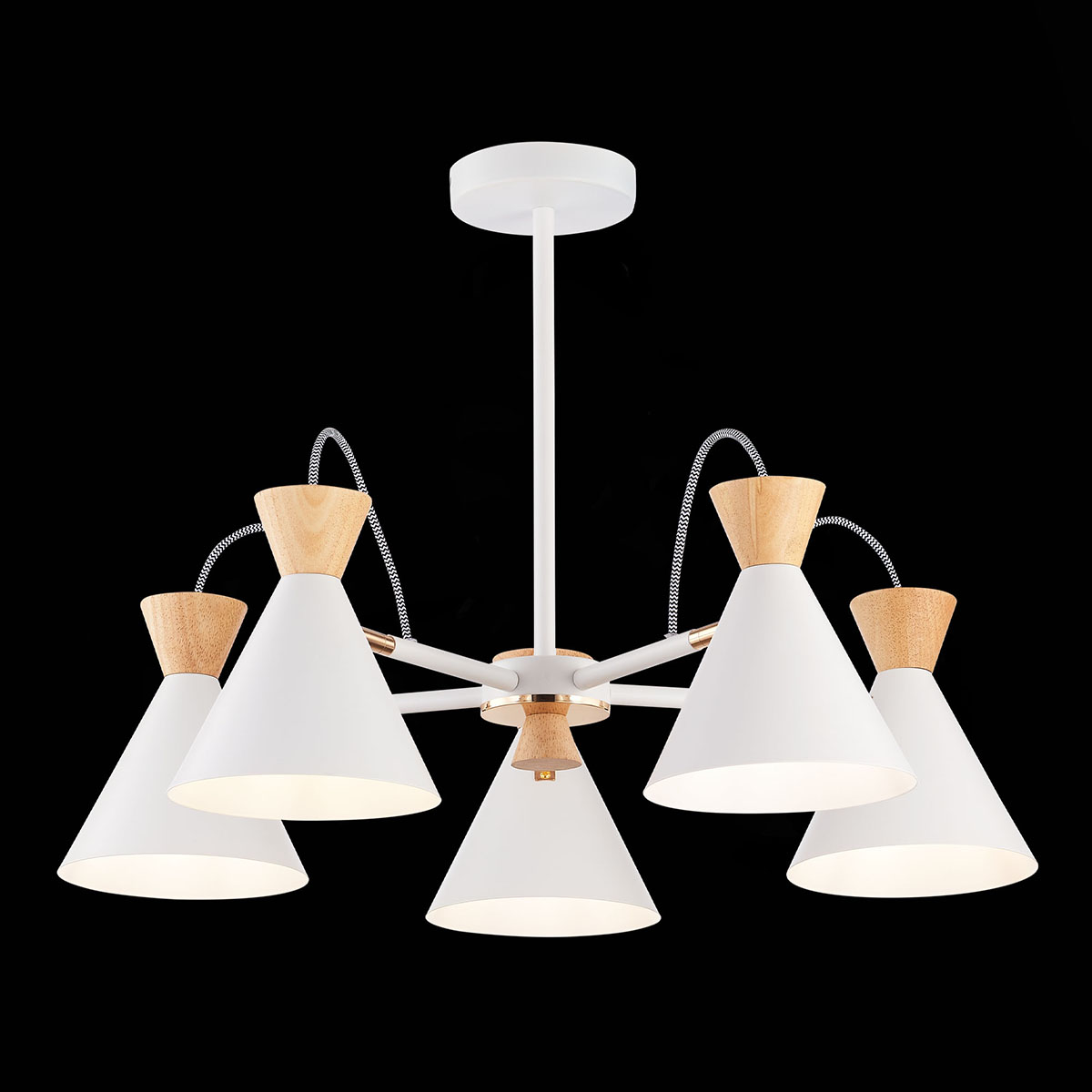Перечислим технические характеристики потолочной люстры Evoluce Modica SLE125102-05. Тип цоколя — E14. Общая мощность лампы — 200 Ватт. Высота люстры — 450 мм. Степень защиты — IP20, что обеспечивает защиту от проникновения предметов размером более 12 мм и защиту от капель воды, падающих под углом более 15 градусов. Потолочная люстра Evoluce Modica SLE125102-05 — часть коллекции Modica. Плафон люстры имеет форму конуса и выполнен в белом цвете.