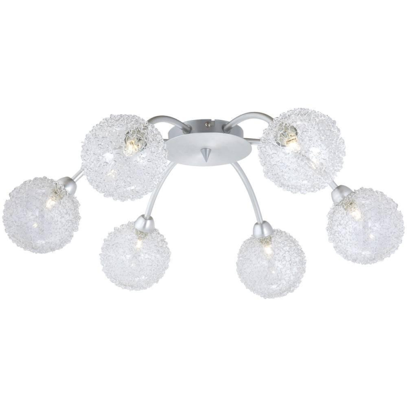 Перечислим технические характеристики потолочной люстры Globo New Design 5662-6. Тип цоколя — G9. Общая мощность лампы — 198 Ватт. Высота люстры — 190 мм. Степень защиты — IP20, что обеспечивает защиту от проникновения предметов размером более 12 мм и защиту от капель воды, падающих под углом более 15 градусов. Потолочная люстра Globo New Design 5662-6 — часть коллекции New Design. Плафон люстры имеет форму круга и выполнен в прозрачном цвете.