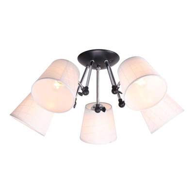 Перечислим технические характеристики потолочной люстры IMEX MD.0717-5-S BK. Тип цоколя — E27. Общая мощность лампы — 300 Ватт. Высота люстры — 270 мм. Степень защиты — IP20, что обеспечивает защиту от проникновения предметов размером более 12 мм и защиту от капель воды, падающих под углом более 15 градусов. Потолочная люстра IMEX MD.0717-5-S BK — часть коллекции MD.0717. Плафон люстры имеет форму конуса и выполнен в белом цвете.
