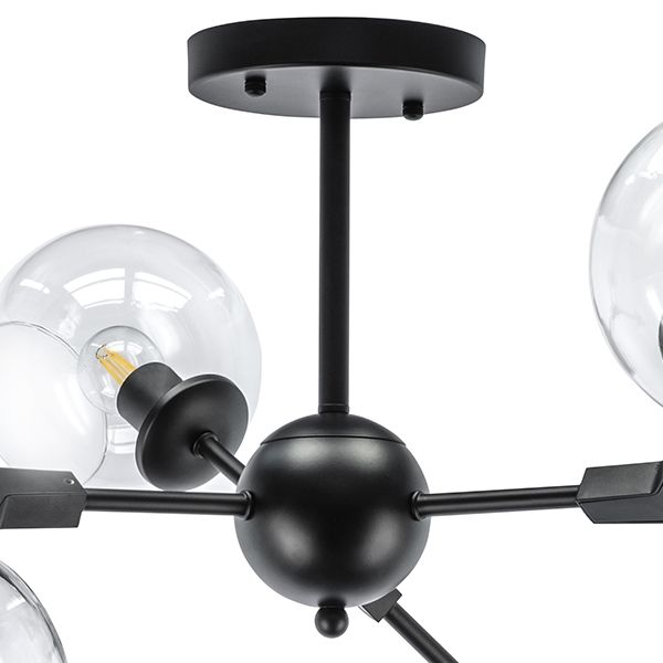 Перечислим технические характеристики потолочной люстры Lightstar Beta 785067. Тип цоколя — E27. Общая мощность лампы — 240 Ватт. Высота люстры — 380 мм. Степень защиты — IP20, что обеспечивает защиту от проникновения предметов размером более 12 мм и защиту от капель воды, падающих под углом более 15 градусов. Потолочная люстра Lightstar Beta 785067 — часть коллекции Beta. Плафон люстры имеет форму круга и выполнен в прозрачном цвете.