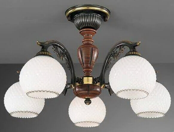 Перечислим технические характеристики потолочной люстры Reccagni Angelo PL 8630/5. Тип цоколя — E27. Общая мощность лампы — 300 Ватт. Высота люстры — 340 мм. Степень защиты — IP20, что обеспечивает защиту от проникновения предметов размером более 12 мм и защиту от капель воды, падающих под углом более 15 градусов. Потолочная люстра Reccagni Angelo PL 8630/5 — часть коллекции rosa 8660. Плафон люстры имеет форму круга и выполнен в белом цвете.