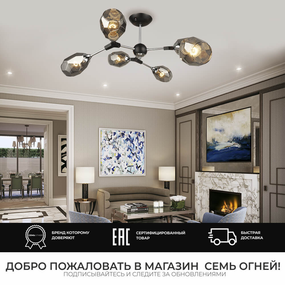 Перечислим технические характеристики потолочной люстры Seven Fires Betney SF3330/6C-BK-CR-SMK. Тип цоколя — E27. Общая мощность лампы — 360 Ватт. Высота люстры — 320 мм. Степень защиты — IP20, что обеспечивает защиту от проникновения предметов размером более 12 мм и защиту от капель воды, падающих под углом более 15 градусов. Потолочная люстра Seven Fires Betney SF3330/6C-BK-CR-SMK — часть коллекции Betney. Плафон люстры имеет форму Декоративный и выполнен в прозрачном цвете.