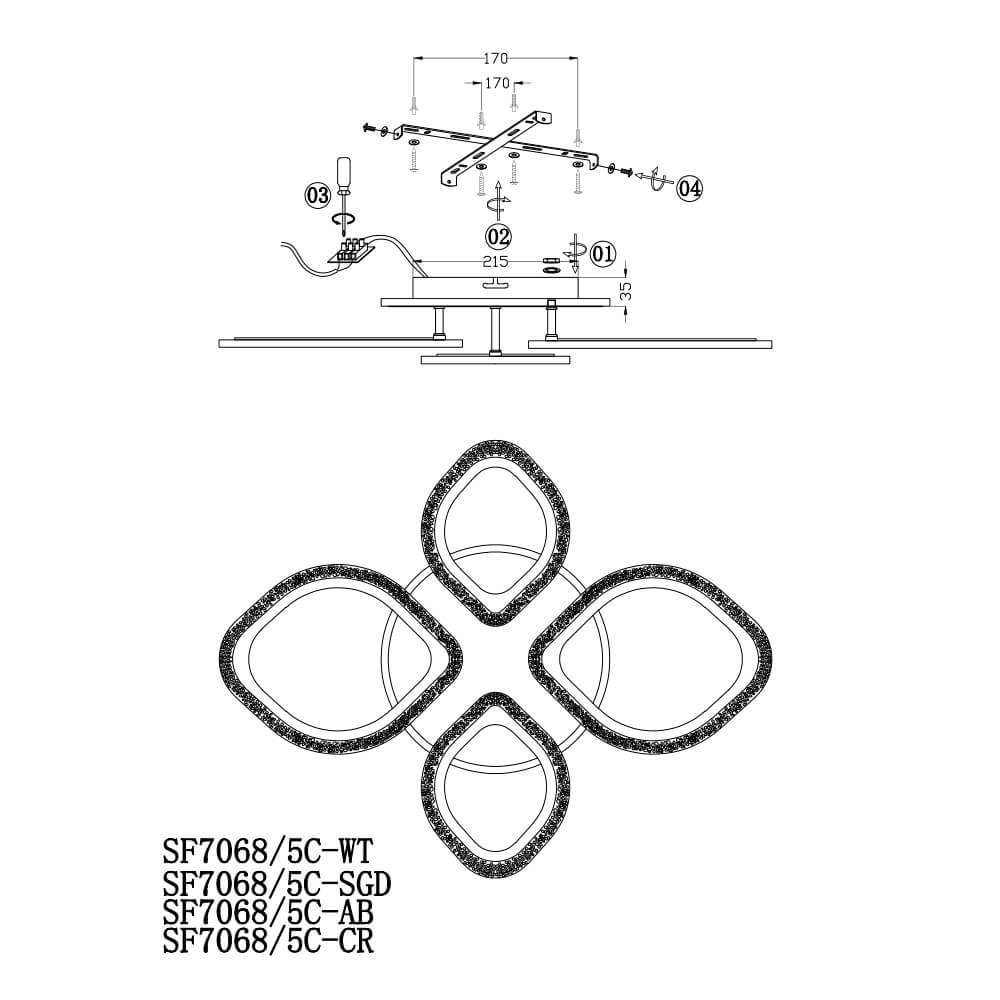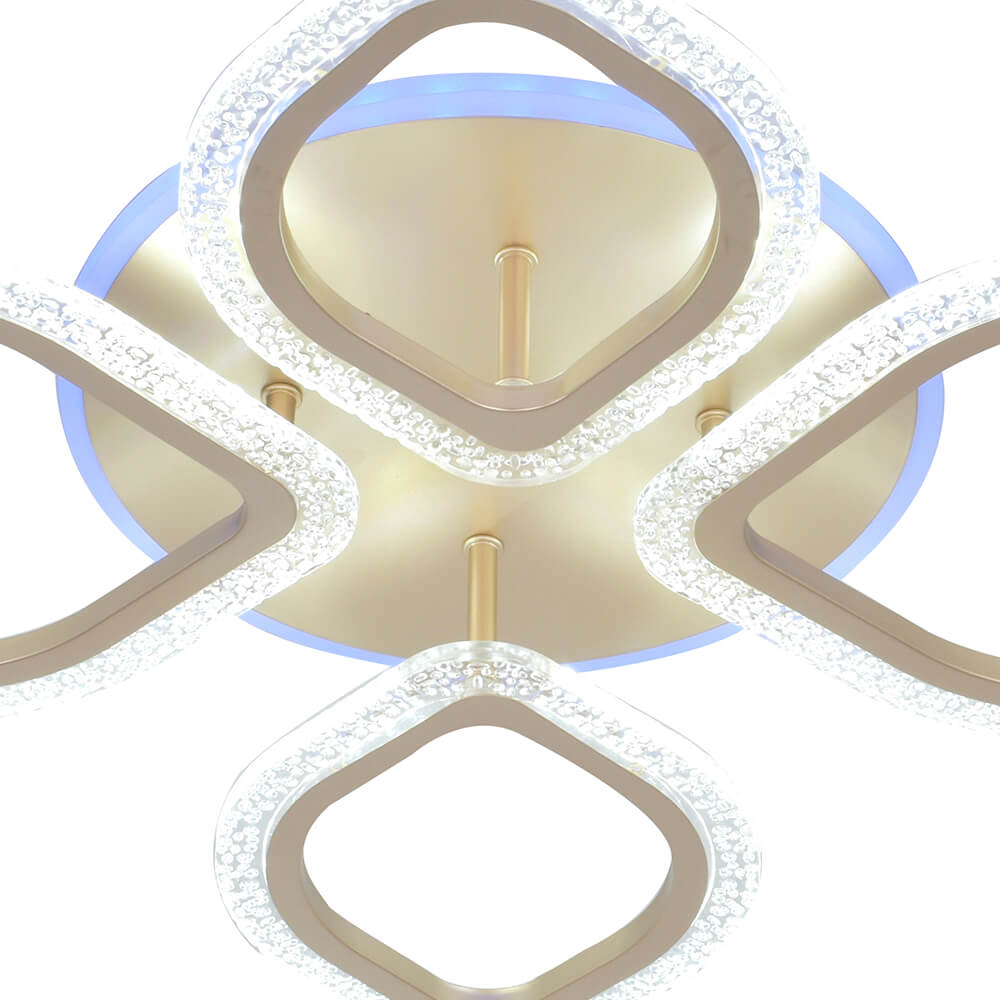 Перечислим технические характеристики потолочной люстры Seven Fires Lejv SF7068/5C-SGD-RGB. Тип цоколя — LED. Общая мощность лампы — 65 Ватт. Высота люстры — 105 мм. Степень защиты — IP20, что обеспечивает защиту от проникновения предметов размером более 12 мм и защиту от капель воды, падающих под углом более 15 градусов. Потолочная люстра Seven Fires Lejv SF7068/5C-SGD-RGB — часть коллекции Lejv. Плафон люстры имеет форму Декоративный и выполнен в Шампань цвете.