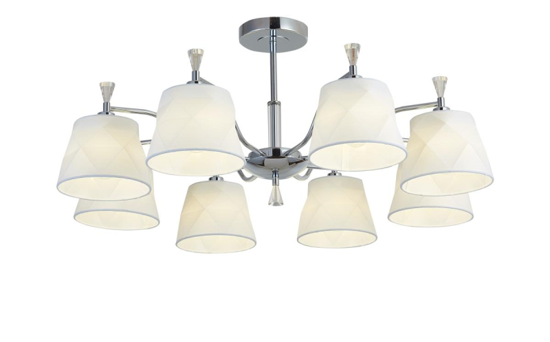 Перечислим технические характеристики потолочной люстры Simple Story 1009-8CL. Тип цоколя — E14. Общая мощность лампы — 320 Ватт. Высота люстры — 340 мм. Степень защиты — IP20, что обеспечивает защиту от проникновения предметов размером более 12 мм и защиту от капель воды, падающих под углом более 15 градусов. Потолочная люстра Simple Story 1009-8CL — часть коллекции 1009. Плафон люстры имеет форму конуса и выполнен в бежевом цвете.