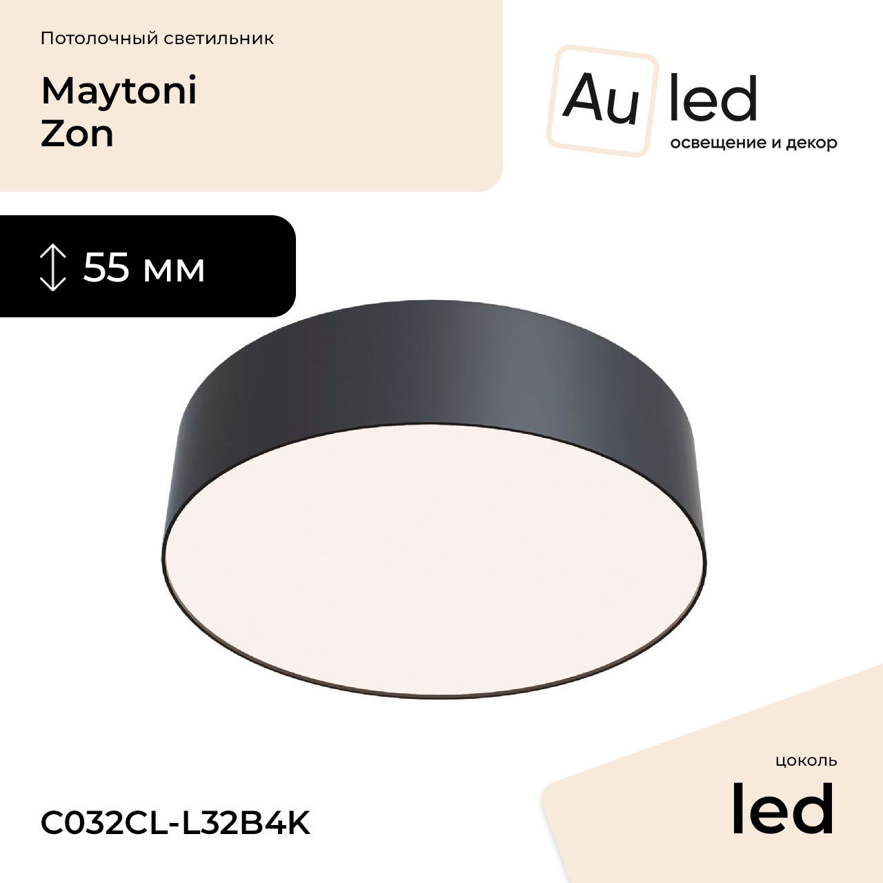 Перечислим технические характеристики потолочного светильника Maytoni Zon C032CL-L32B4K. Тип цоколя — LED. Общая мощность лампы — Ватт. Высота люстры — 55 мм. Степень защиты — IP22, что обеспечивает защиту от проникновения предметов размером более 12 мм и защиту от капель воды, падающих под углом более 15 градусов. Потолочный светильник Maytoni Zon C032CL-L32B4K — часть коллекции Zon. Плафон люстры имеет форму круга и выполнен в черном цвете.