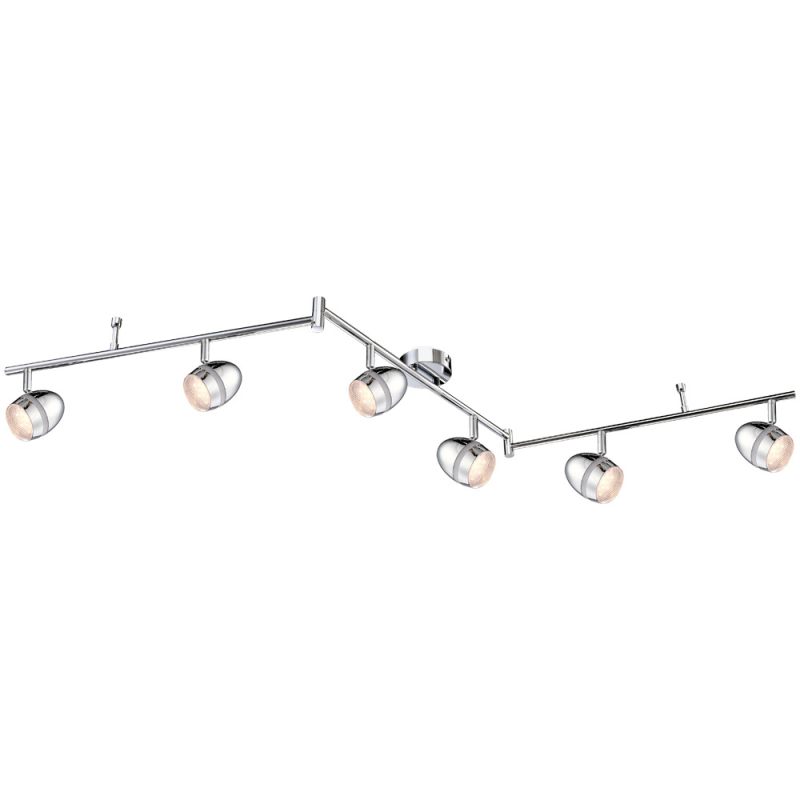 Перечислим технические характеристики Трековая система Globo Manjola 56206-6. Тип цоколя — LED. Общая мощность лампы — 18 Ватт. Высота люстры — 165 мм. Степень защиты — IP20, что обеспечивает защиту от проникновения предметов размером более 12 мм и защиту от капель воды, падающих под углом более 15 градусов. Трековая система Globo Manjola 56206-6 — часть коллекции Manjola. Плафон люстры имеет форму овала и выполнен в прозрачном цвете.