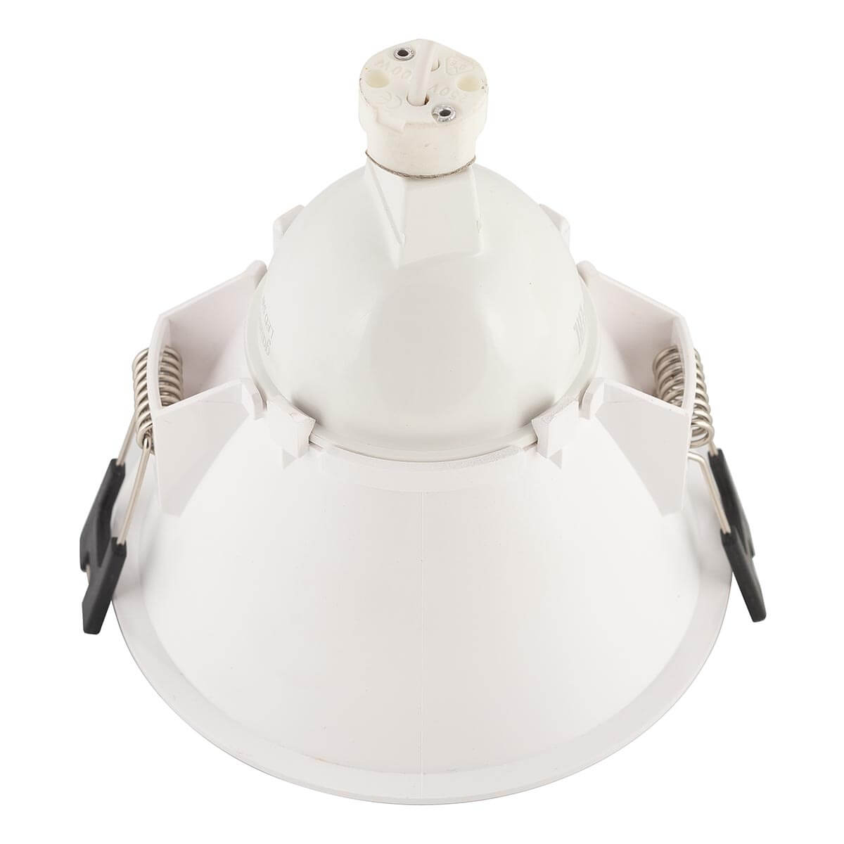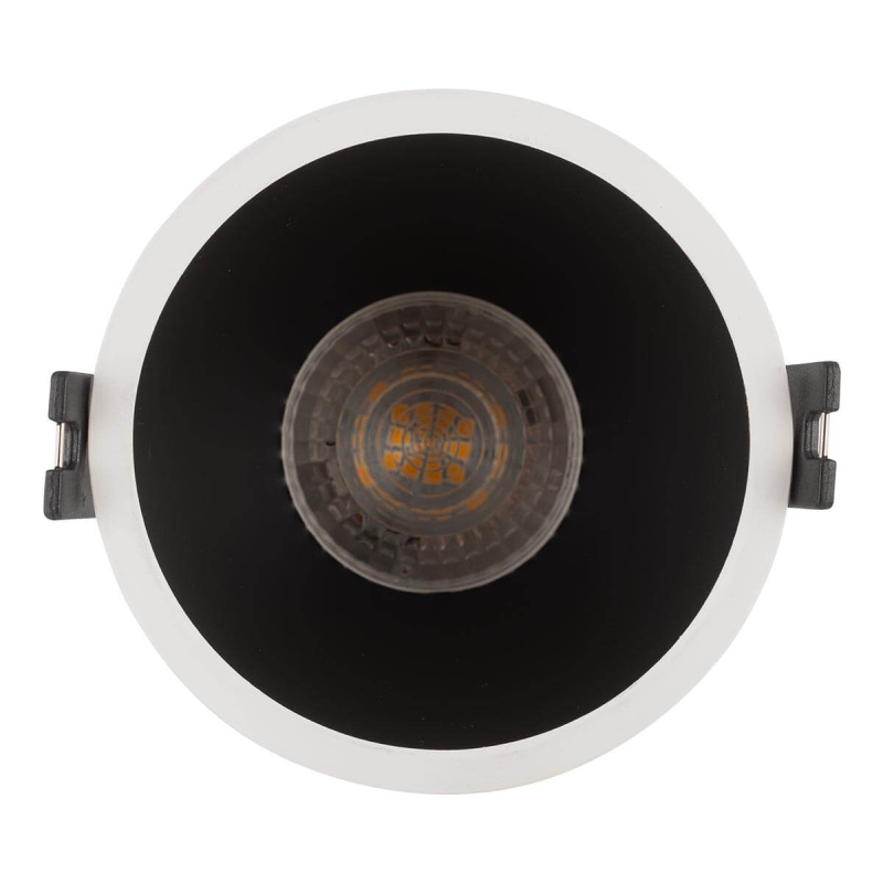 Перечислим технические характеристики встраиваемого светильника Denkirs DK3026-WB. Тип цоколя — GU5.3. Общая мощность лампы — 10 Ватт. Высота люстры — 53 мм. Степень защиты — IP20, что обеспечивает защиту от проникновения предметов размером более 12 мм и защиту от капель воды, падающих под углом более 15 градусов. Встраиваемый светильник Denkirs DK3026-WB — часть коллекции Karup. Плафон люстры имеет форму и выполнен в черном цвете.