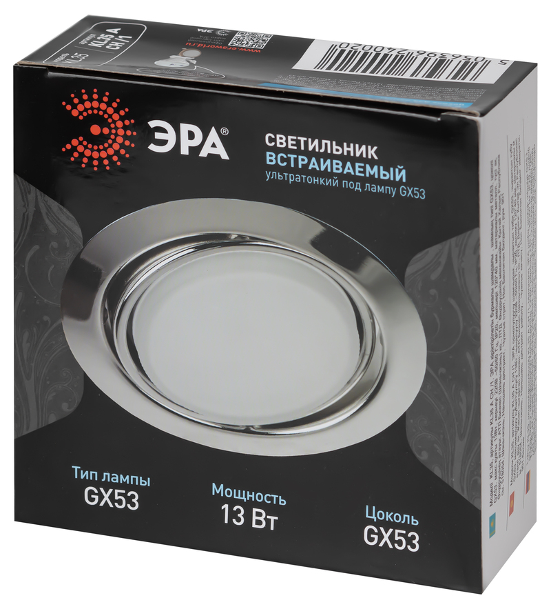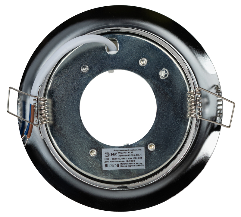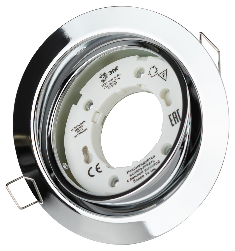 Перечислим технические характеристики встраиваемого светильника Эра KL35 A CH /1 Б0049556. Тип цоколя — GX53. Общая мощность лампы — 15 Ватт. Высота люстры — мм. Степень защиты — IP20, что обеспечивает защиту от проникновения предметов размером более 12 мм и защиту от капель воды, падающих под углом более 15 градусов. Встраиваемый светильник Эра KL35 A CH /1 Б0049556 — часть коллекции KL35. Плафон люстры имеет форму круга и выполнен в Хром цвете.
